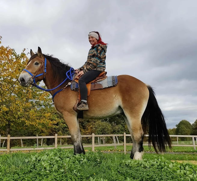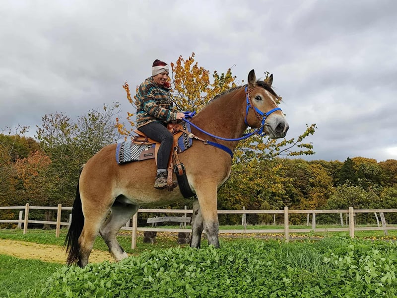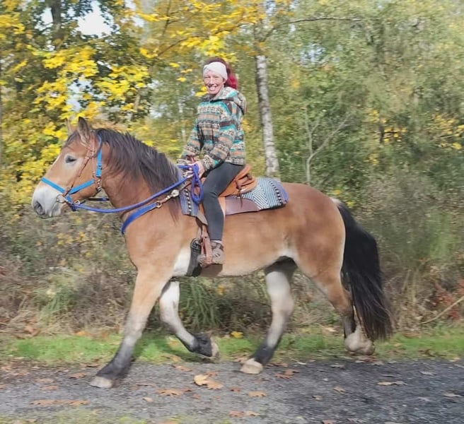 Traumtyp ein Schmusebär *Barocke - Toller Freizeitwallach BEN *Geburtsjahr*: 2022 *Stockmaß*: 1,68m *Ausstattung*: E-Pass, Microchip und AKU vorhanden *Preis*: 7500 € Western Zubehör mit Markensattel ca. 1500,- -1700,- . Er ist ein traumhafter, barocker Wallach mit einem ausgeglichenen Wesen. Er eignet sich perfekt für das Gelände-, Wanderreiten und den Freizeitbereich – ob Englisch oder Western, macht beides mit Begeisterung. - Offenstall- und Herdenhaltung gewohnt, aber auch in der Box kein Problem - Absolut zuverlässig und entspannt im Umgang - Ein vielseitiger Partner für Reiter jeden Anspruchs ### *Zusätzliche Informationen:* - Zubehör und Transport können organisiert werden. - Unser Hofladen bietet eine kleine Auswahl an gebrauchten Westernsätteln. - *Ratenzahlung ist nicht möglich.* ### *Service für Kunden:* - Jeder Kunde erhält ein vertraglich festgesetztes *Umtauschrecht von drei Monaten.* - Ein Proberitt bei uns ist möglich, damit Sie Ihr Traumpferd kennenlernen können. Für 35 Euro können Sie reiten, sich ihn vorreiten lassen, spazieren gehen oder mehr. Auf Wunsch können Sie auch ein zweites Pferd testen. Dieser Betrag wird beim Kauf eines Pferdes am gleichen Tag selbstverständlich verrechnet. ### *Besonderheiten:* - Bei sofortiger Abholung mit Pferdeanhänger erhalten Sie *einen Nachlass von 100 Euro.* - Wir absolvieren den Verkauf mit einem transparenten Proberitt, um sicherzustellen, dass es das richtige Pferd für Sie ist. ### *Rechtliches:* - Wir sind alleinige und uneingeschränkte Eigentümer der Bilder; die Bildrechte liegen bei uns. *Fremdverwendung der Bilder ist verboten.* - Bitte beachten Sie, dass es sich um ein lebendes Pferd handelt. Unsere Angaben basieren auf den Eindrücken des Betreuers und stellen keine zugesicherten Eigenschaften dar. - Anzeigen werden sofort gelöscht, sobald die Pferde verkauft sind. *Interesse?* Rufen Sie uns gerne an unter *0171-4001968* (täglich von 8–20 Uhr). *Bitte keine Mails oder WhatsApp, nur Anrufe!*