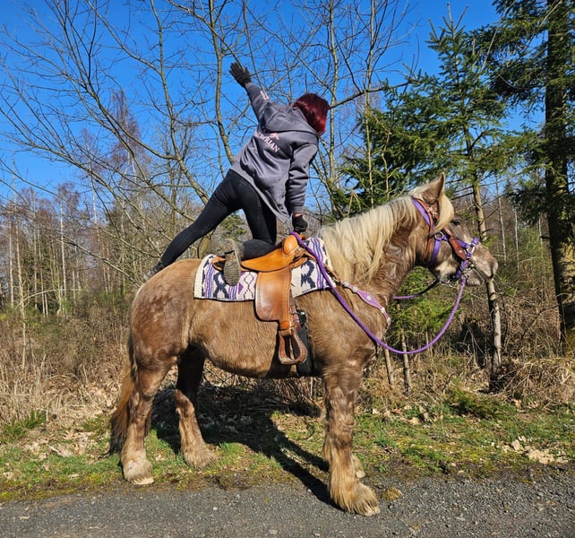 Baroque Coloured Chestnut Mare – Calm, People-Oriented MELODY Age: 4 years Height: approximately 16.1 hh Price: €6,900 Health Certificate: available ✨ Description: This lovely baroque chestnut mare impresses with her gentle, calm, and very people-oriented nature. She seeks contact with humans and is well-behaved, friendly, and straightforward in daily handling. Under saddle, she is already very well-behaved and pleasant to ride for her young age. She cooperates willingly, is attentive, and provides a comfortable riding experience. Due to her age, she still needs further development, but she has excellent potential and a positive attitude. She is open to new experiences, motivated, and willing to do everything – an excellent foundation for a future leisure horse with which one can grow together and enjoy many wonderful hours. Ideal for: Leisure riders or ambitious riders seeking a young, friendly, and well-behaved mare with potential, who enjoy ongoing training. Our horses are regularly: – dewormed – attended to by the farrier – osteopathically checked Transport can be arranged affordably upon request. Our services include: ✅ 3-month exchange guarantee ✅ Trial ride: €35, each additional horse €25 (credited on the same day if purchased) ✅ €100 immediate discount for pickup/transport on the same day ✅ Personal and honest advice Please contact us exclusively by phone: 0171 – 4001968 Available daily from 8 a.m. to 8 p.m. ⚠️ No emails or WhatsApp messages ⚠️ All information without guarantee