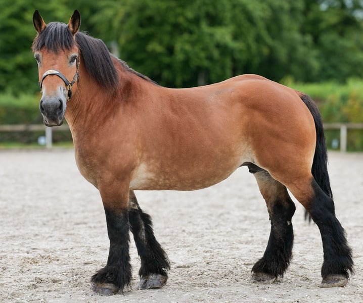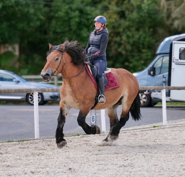 Nom : Elly Race : Selle français x Trait comtois Sexe : Jument Date de naissance : 05/07/2013 Âge : 12 ans Taille : 1,53 m Couleur : Brun Origine : non connue Caractère : proche de l’humain, patient, curieux, intelligent, courageux Éducation / Aptitudes : montée, loisir, dressage, randonnée, porteur de poids Expérience en terrain : fiable, sûre, intrépide, en solo ou en groupe Santé : vermifugée, vaccinée, pieds nus, sans eczéma, dents contrôlées, traitée en ostéopathie Hébergement : box, paddock Particularités : ferrée et chargée en remorque, compatible avec le troupeau, cheval de randonnée Les caractéristiques mentionnées reposent sur notre appréciation personnelle et ne constituent pas une garantie. Prix : 4 900 € (prix TTC) Vous avez suscité notre intérêt ? Pour vous donner une meilleure idée d’Elly, nous serions ravis de vous envoyer sa vidéo de monte. Bien entendu, nous restons à votre disposition pour une description détaillée du cheval, un conseil personnalisé et pour répondre à toutes vos questions, également par téléphone. N’hésitez pas à nous contacter à tout moment par WhatsApp ou à appeler le : +49 15119487595 Nos horaires téléphoniques sont quotidiens de 7h00 à 13h30 et à partir de 20h00. Nous attendons votre contact avec impatience ! Une visite vétérinaire clinique ou radiologique avant achat peut être effectuée par le vétérinaire de votre choix. Elly peut également être livrée en toute sécurité et confortablement à votre nouveau domicile. Nous nous occupons de toutes les préparations nécessaires et du transport pour que votre nouveau cheval arrive sans stress, bien pris en charge, assuré et en bonne santé. Actuellement, nous proposons une sélection soigneusement choisie de chevaux à vendre. Chez nous, vous trouverez sûrement le cheval de vos rêves. N’hésitez pas à visiter notre site internet : www.marvinsroyalhorses.de. Chers clients, nous serions heureux de vous présenter nos chevaux. Il est possible de faire des visites, de brosser, de seller, de longé, de faire du travail à pied, ainsi que des essais en carrière, sur le terrain ou en manège, pour mieux connaître votre futur compagnon. Cela coûte 40 € par cheval, 30 € pour chaque cheval supplémentaire, et sera remboursé lors de l’achat. Notre adresse : Ferdinand Grube 50 53577 Neustadt Wied Google Maps : marvinsroyalhorses