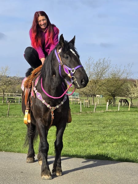 Rapp-stute – mensgericht en gezinsvriendelijk Leeftijd: 4 jaar Schofthoogte: ca. 1,53 m Prijs: € 6.300 AKU aanwezig Zij is: – braaf en betrouwbaar in omgang en onder het zadel – zeer mensgericht en knuffelig – ondanks haar jonge leeftijd al evenwichtig en ontspannen – een geweldig paard voor het hele gezin – met haar vriendelijke aard ook interessant voor therapeutisch rijden Perfect voor: Gezinnen, recreatieruiters of instellingen die op zoek zijn naar een vriendelijk en coöperatief paard dat plezier heeft in samen zijn. Onze paarden: – regelmatig ontwormd – verzorgd door hoefsmid en osteopaat Boerderijwinkel: Westernzadels, hoofdstel, accessoires Transport en accessoires naar wens voordelig geregeld Onze service: ✅ 3 maanden ruilgarantie ✅ Proefrit: € 35, elk extra paard € 25 (bij aankoop op dezelfde dag verrekend) ✅💰 Kortingsmogelijkheden bij directe overdracht of transport op dezelfde dag: • Prijsklasse 1: € 100 korting • Prijsklasse 2 (vanaf € 5.000): € 250 korting ✅ Persoonlijk en eerlijk advies Voor vragen graag telefonisch: 0171 – 4001968 Dagelijks bereikbaar van 8.00 tot 20.00 uur ⚠️ Geen e-mail of WhatsApp ⚠️ Alle gegevens zonder garantie