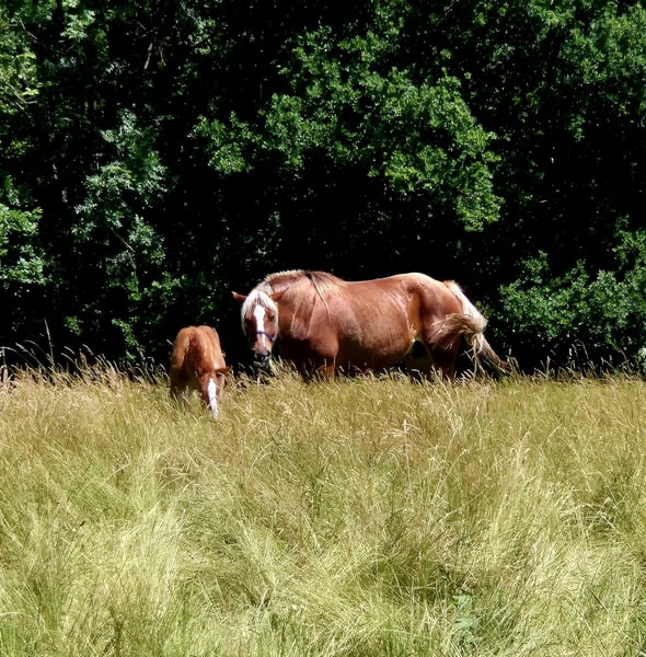Magnifique jument Comtois avec un poulain mâle recherche un foyer aimant Nous recherchons pour cette superbe jument Comtois un foyer approprié et aimant. Elle a 6 ans, mesure environ 1,60 m et a déjà donné naissance à deux poulains en bonne santé. Actuellement, elle est avec son magnifique poulain mâle et il serait souhaitable de les placer ensemble. La jument est encore à l'état brut, mais elle se montre amicale. Avec la patience, le calme et la compréhension des chevaux nécessaires, elle offre une belle base pour une formation ultérieure. Alternativement, elle pourrait également intéresser des éleveurs ayant un bon œil pour le type et le fondement. Les deux animaux possèdent bien sûr les papiers nécessaires : • La jument a un passeport équin ainsi qu'une lignée complète. • Pour le poulain, un certificat de saillie est disponible. Si vous êtes à la recherche d'un couple de chevaux spécial – que ce soit pour l'élevage ou pour une formation ultérieure – nous serions très heureux de recevoir votre message !