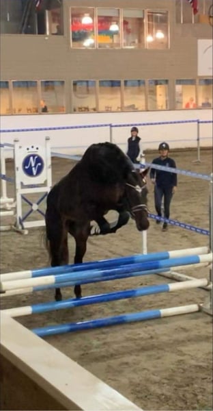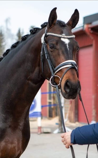 Picture perfect and well behaved licensed stallion. 3 good basic gates, good confirmation. Fürst Romancier x De Noir Always safe to ride with a good work ethic. Nice forward without being hot. Breeds foals with good basic gaits, nice expressions and most important, great mentality! 2 years he gave the best 2 year old in Norwegian Warmblood, he also gave the best 3 year old in Norwegian Warmblood. Easy to breed with excellent sperm-quality. What a Feeling has never been injured or lame, clean x-rays. He is not educated for his age due to lack of time by the owner. He makes a green change, nice working piruettes and a good green piaf. Easy lateral work. Ridden on a snaffle and light in the hand and on the aids.