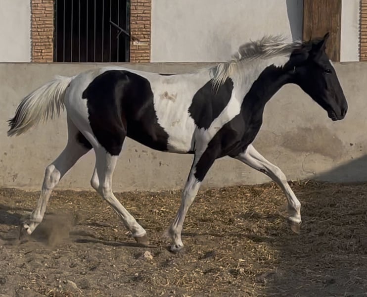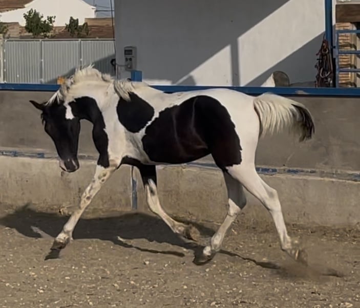 Espectacular potro tobiano con 27 meses 1,45 de alzada , con un muy buen carácter que lo va a hacer apropiado para niños y también destacar que será un animal apropiado para la reproducción ya que es homocigoto en el gen tobiano TO/TO . Es un potro que está criado en familia tocado desde pequeño y tiene una doma de cuadra muy avanzada . Da cuerda perfectamente, sube al remolque , da las cuatro patas etc