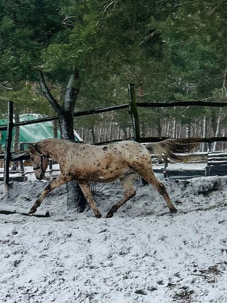 Zum Verkauf steht ein hübscher Hengst mit beeindruckendem Ausdruck! Geboren im Juni 2024, sired von einer silberfarbenen andalusischen Stute und einem polnischen Tarpan-Hengst. Sehr ruhig und gut im Umgang, bereits an Sattel und Longe gewöhnt.