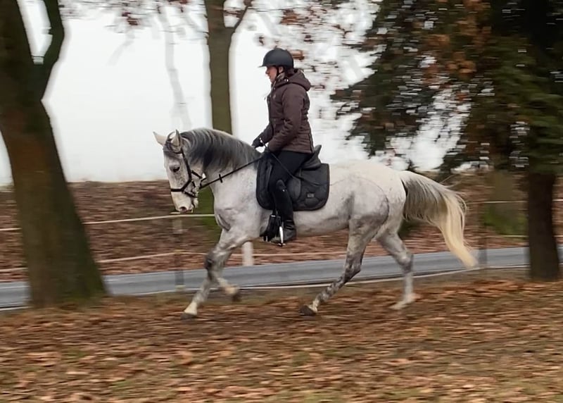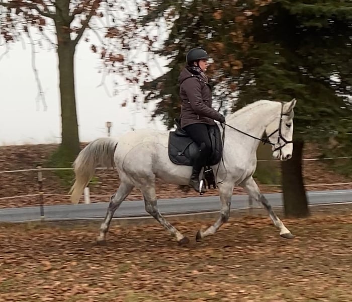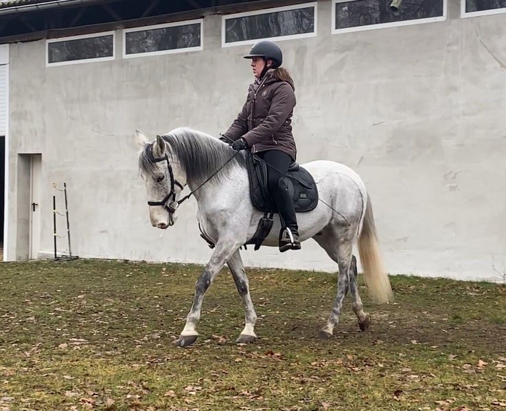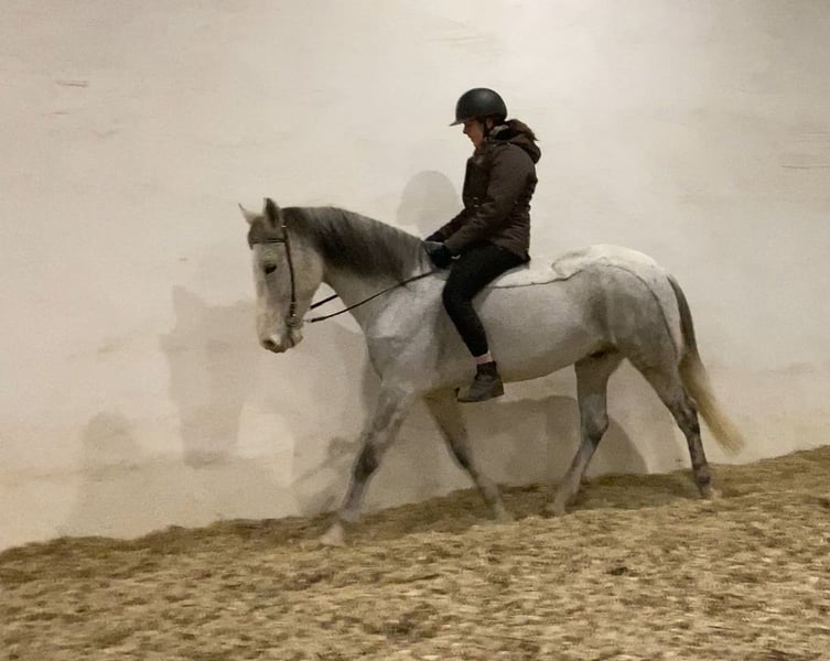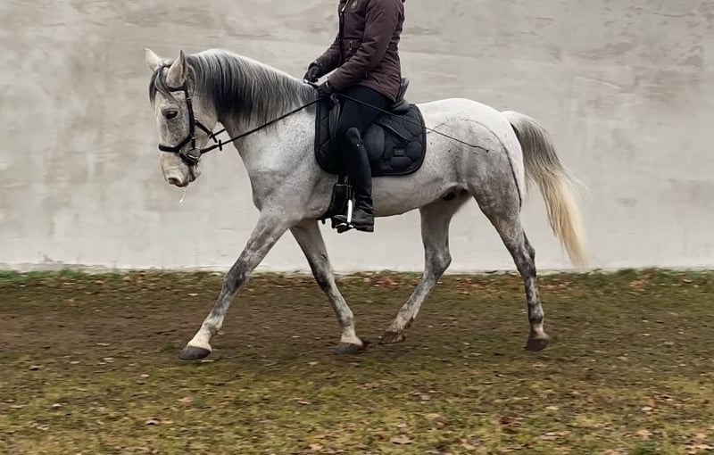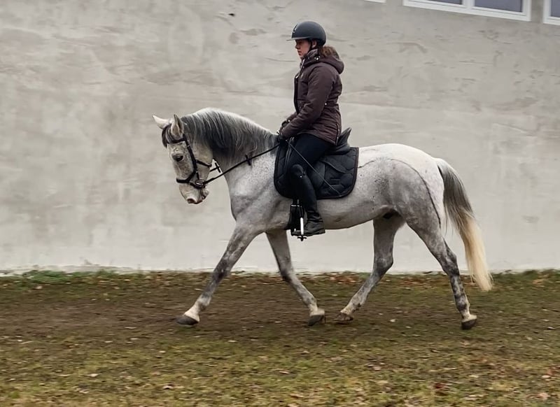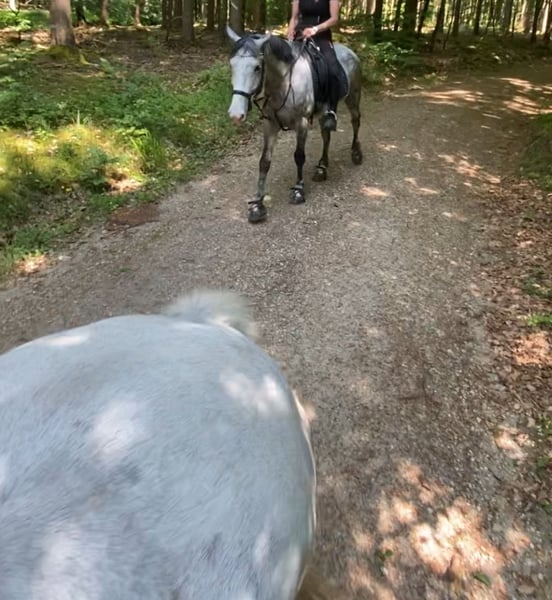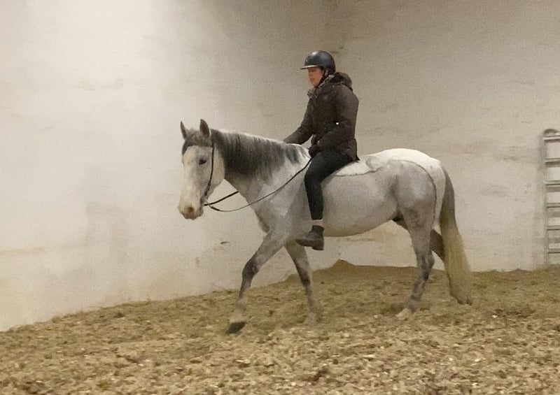 Im Auftrag für eine Freundin aus Zeitmangel sucht dieser kleine Warmblutwallach sein für immer zuhause. Er war jetzt 3,5 Jahre in ihrem Besitz aber leider haben sich die Umstände geändert, weshalb dieser hübsche Wallach nun ein neues Zuhause sucht. Er ist lieb und brav beim reiten, unerschrocken und leichtrittig aber im Umgang manchmal ein kleiner Quatschkopf, deshalb dort noch nicht für reine Anfänger geeignet. Auf ihm reiten können aber durchaus auch schwächere Reiter. Die letzten Jahre wurde er hauptsächlich ins Gelände geritten, allein oder in kleiner Gruppe, was ihm durchaus gut liegt. Teilweise hat er dort souverän flotte 15-20 km Ritte gemeistert. Er liebt aber auch gemütliche Feierabendritte am langen Zügel. Er ist nicht faul aber wenn er nicht muss, dann hat er es nicht eilig. 😉 grundsätzlich ein lieber Kerl, der einfach im Umgang manchmal einen kleinen Ponydickkopf hat und an Regeln erinnert werden muss. Beim reiten absolut lieb. Er war noch nie krank und läuft schon immer Barhuf und im Gelände mit Hufschuhen. Aktuell steht er in gemischter Herde mit 24/7 Zugang zur Weide und 24/7 Heu. Hier zeigt er sich relativ rangniedrig, hat aber einen ausgeprägten Spieltrieb mit anderen jungen Pferden, weshalb wir uns für ihn wieder einen Offenstall oder Stall mit ganztags Weide wünschen. Boxen frustrieren ihn, da ist er eher schlecht gelaunt und diese Haltung funktioniert für ihn nicht, in vergangener Zeit hat er dies mit schnappen oder zwicken gezeigt. Im Offenstall hat er dieses Verhalten komplett abgelegt. Bei Bedarf kann er mit seinem passenden Zubehör gegen Aufpreis, in sein neues Zuhause ziehen. Da wir sichergehen möchten, dass er seinen passenden Menschen findet, beantworten wir nur Anfragen mit Namen und kleinem Text, was er für ein neues Zuhause kriegen könnte und was dort mit ihm gemacht werden würde, bzw. was er für eine neue Aufgabe und Haltung bekommt.