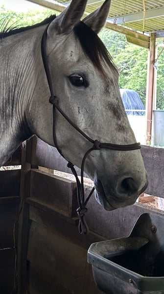 Véga 10 ans ONC Croisé ibérique/PS Véga est un cheval sensible et proche de son cavalier. Il adore les câlins. Il recherche un partenaire stable et zen. Bien mis sur le plat, ne rechigne pas à sauter une petite barre mais je ne l’ai jamais travaillé dans ce domaine. C’est un cheval qui aime la balade et passe bien en tête à condition d’être avec des copains. Il est très grégaire et a besoin de vivre avec au moins un ou une copine. Il est ok maréchal, dentiste et ostéopathe.