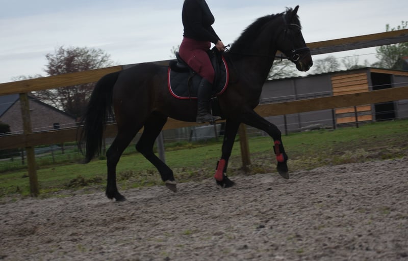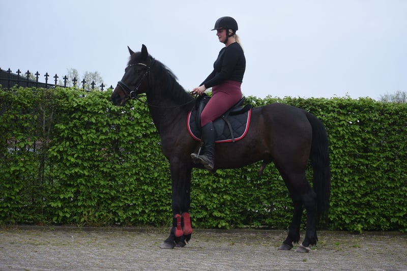 Howi, offiziell getauft mit dem ungewöhnlichen Namen: Howimeturmother, ist ein Schatz von einem Pferd. Früher wurde er bereits im Dressur- und Freizeitbereich eingesetzt und wird bei uns mit viel Freude geritten. Er ist hier sehr kooperativ, sogar ein weniger erfahrener Reiter kann mit ihm reiten. Er hat ein äußerst liebes Wesen. Optisch erinnert Howi stark an einen barocken Friesen. Vor acht Jahren haben wir ihn an ältere Menschen verkauft, die einmal von Feuerwerk in der Nähe der Stallung erschreckt wurden. Jetzt bei uns hat er seine Ruhe wiedergefunden, sowohl im Stall als auch auf der Weide. Sogar ein Anfänger-Kind hat bereits wieder auf ihm geritten. Er besitzt einen Pass mit Stammbaum von From Above x Wall Street Banker. Howi wurde am 16.04.2014 geboren und ist ca. 1,61 m groß. Aktuell liegt ein aktuelles Gesundheits- und Korrekturrapport inklusive Blutprobe vor. Preis: 3.950 € inklusive Markenzäumung.