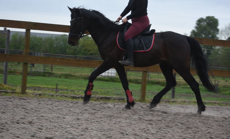 Howi, officially registered under the distinctive name Howimeturmother, is a wonderful horse. He has previously been backed and is enjoyed by us for dressage training and recreational riding. He is very cooperative here; even a less experienced rider can ride him comfortably. He has a very sweet temperament. In appearance, Howi resembles a baroque Friesian. Eight years ago, we sold him to an older couple, who were once frightened by fireworks near the stable. Now, he has regained his calmness with us, both in the stable and in the field. Even a beginner child has already ridden him again. He is registered with a passport and pedigree from From Above x Wall Street Banker. Howi was born on April 16, 2014, and stands approximately 16.1 hh. He comes with a recent inspection report, including blood tests. Price €3,950, including a branded saddle.