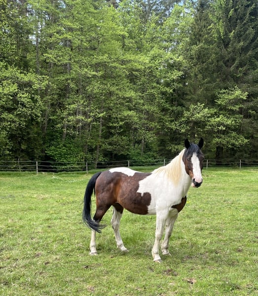 We are looking for a forever home for an Hungarian Schecke gelding. Not suitable for beginners! He requires an experienced rider. He is insecure and sensitive. He has been ridden little over the past three years and not at all since May. Unfortunately, we do not match riding-wise. Therefore, he would need to be retrained. We have no information about his past. On the ground, he is uncomplicated and well-behaved with the farrier and veterinarian. Currently barefoot. He gets along without issues in our gelding herd and tends to be dominant. We wish for a loving home where someone can provide him with the security he needs, even in the saddle. Or simply as an easy-going companion horse. Place before price.