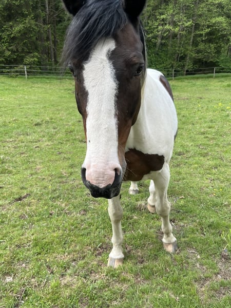 Wir suchen einen Lebensplatz für einen ungarischen Scheckwallach. Kein Anfängerpferd! Braucht einen erfahrenen Reiter. Er ist unsicher und sensibel. Wurde die letzten 3 Jahre wenig geritten, seit Mai gar nicht mehr. Wir passen reiterlich leider nicht zusammen. Daher müsste er erst wieder antrainiert werden. Über seine Vergangenheit wissen wir leider nichts. Vom Boden aus ist er unkompliziert, brav beim Hufschmied und Tierarzt. Momentan barhuf. Problemlos in unserer Wallach-Herde, eher ranghoch. Wir wünschen uns einen Traumplatz für ihn, bei einem Menschen, der ihm die nötige Sicherheit auch im Sattel geben kann. Oder einfach als unkompliziertes Beistellpferd. Platz vor Preis