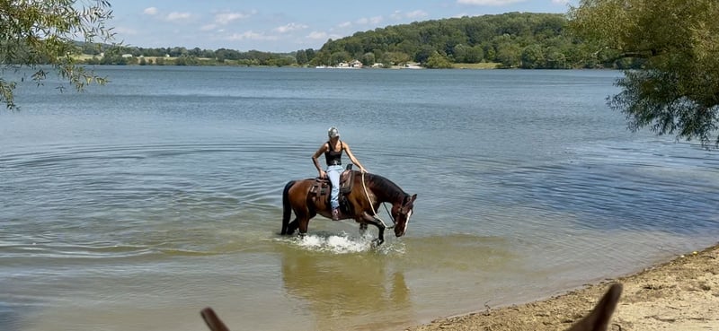 On the ground, he’s a total lovebug. Cuddly, sweet, and the kind of horse that will let you brush him for hours while making weird happy faces. Under saddle? Well… he’s fun. The “challenging in a character-building way” kind of fun. If you’re looking for a horse that’ll keep you humble, teach you lessons, and possibly make you laugh-cry mid-ride — congrats, you’ve found your match.