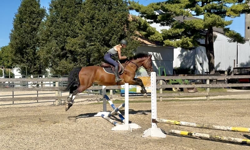 Now listen: Harmony can do flatwork. He just doesn’t love it. Think of it as asking your class clown to do taxes. Doable? Yes. Joyful? Not exactly. But throw a jump in the mix and suddenly he’s got “happy ears” and is ready to show off. He lives for jumping and will lock on to a fence like it personally insulted his ancestors. He’s honest, scopey, and could probably jump your car if given the chance.