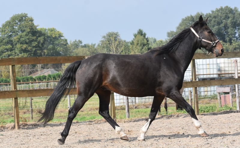 Farmer’s Pride Jester is the pride of his breeder, and he truly has a heart of gold! He stands approximately 1.56 meters tall and was born in 2008. He already has experience in riding schools and care facilities. Jester holds a recent inspection report including blood testing, which approves him for sport. He comes from a full pedigree: Rayo X Perrybridge Touch and Go x Joey. He is suitable for a rider with some experience, but he also offers the seasoned rider plenty of challenge to achieve even more! Ideal for both sport and recreational riding. Price reduced from €3,950 to €2,450, including a branded saddle and saddle pad.