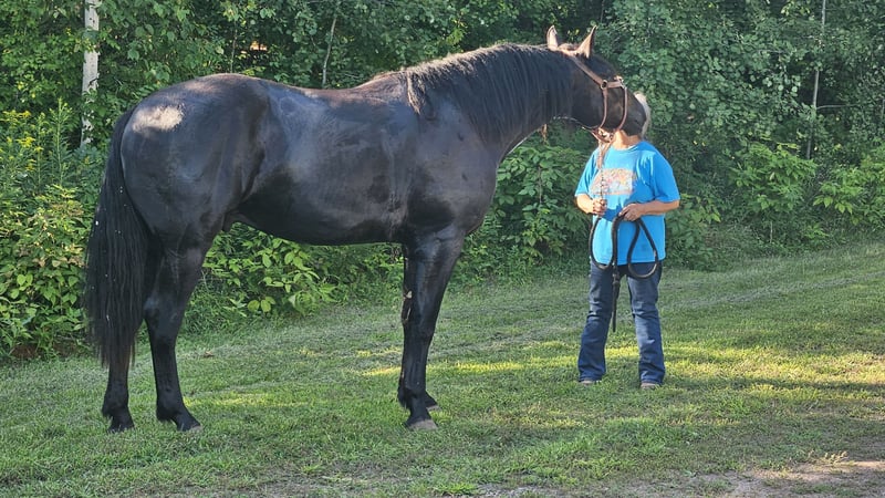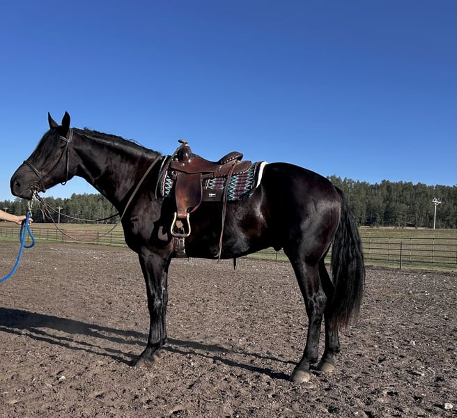 **For Sale: Stunning 3-year-old Black Morgan/Percheron cross Gelding ** Introducing a remarkable opportunity to own a magnificent, 3-year-old black gelding standing at an impressive 17 hands high. This exceptional horse is not only a head-turner but also shows great potential in the dressage arena. **Key Features:** - **Breed:** Percheron/Morgan cross - **Gender:** Gelding - **Year of Birth:** 2022 - **Color:** Black - **Height:** 17 hh - **Discipline:** Dressage/Eventing/Over Fences This gelding would be an excellent choice for advanced riders. With his impressive stature and elegant movement, he is sure to excel in dressage, eventing, and/or over fences. and become a true partner in the arena. He has been on three trail rides and handled himself very well. UPDATE: Just returned from riding Jack in the Black Hills. Great experience! He handled everything perfectly and was the talk of the ranch! Don’t miss out on the chance to add this exceptional horse to your stable. For more information and to schedule a viewing, please contact us today! Jenice - Please leave message 612=772=3093