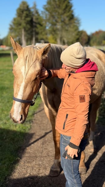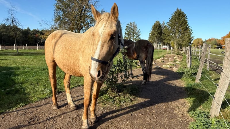 Key Data: Name: Cody Age: 3 years Training Level: Unridden Temperament: Cuddly and age-appropriate, ranging from very well-behaved to somewhat cautious; likely to have some playful moments but without any naughtiness – just a young horse with a good heart. Cody already knows quite a lot and is easy to handle. However, he is only 3 years old, so the main work is still ahead. He is familiar with light round pen work and learns quickly, showing great effort and sensitivity. He will undoubtedly become a wonderful riding horse for anyone who enjoys riding – once someone shows him the way. Please no beginners. He reacts very delicately and calmly to signals, which should be maintained. Experience with young horses or at least a knowledgeable trainer is recommended to keep him healthy on his way to becoming a riding horse. Dogs, children, tanks, tractors… all are fine for him. Loading, however, still presents a challenge for Cody. We are working on it, and he is improving. If you prefer to do everything yourself and are looking for a horse to develop on your own, Cody might be the perfect match. We have already laid the groundwork (leading, round pen work, some weight on the saddle). No box stall housing, or at most only overnight (not because he couldn’t handle it, but because we don’t wish that for him), and a harmonious herd (Cody is a lower-ranking horse) with enough feeding places. Everything else is possible with him. Cody quickly builds trust with his handler, which makes the upcoming training as a riding horse easier. We want to ensure that this trust is not exploited. His musculature should be further developed before he starts working as a riding horse. We are looking for someone who is aware of this and for whom he can be the heart horse. We do not have sales videos. Anyone interested in Cody is welcome to meet him in person. Likewise, we would love to get to know his new owner personally. He is sound and trotting quietly.