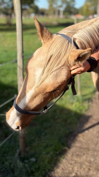 Kerngegevens: Naam: Cody Leeftijd: 3 jaar Opleidingsstand: nog niet gereden Cody kent al behoorlijk wat en is daarom vriendelijk in de omgang. Maar hij is ook pas 3 jaar oud, wat betekent dat het grootste werk nog voor hem ligt. Hij is bekend met lichte round pen werk en toont zich snel leergierig, zeer ijverig en fijn in zijn reacties. Hij is gemakkelijk te impressioneren, zoekt geen discussie. Hij zal zeker een geweldig rijpaard worden voor iedereen die plezier wil maken – dat moet hem alleen nog iemand leren. Geen beginners, graag. Hij reageert heel fijn en braaf op signalen. Dit moet zo blijven. Ervaring met jonge paarden of in ieder geval een trainer is nodig om hem gezond te houden op weg naar en als rijpaard. Honden, kinderen, tanks, tractoren… alles is voor hem prima. Laden blijft voor Cody nog een uitdaging, maar we werken eraan en het wordt beter. Wie alles zelf wil doen en op zoek is naar een paard om zelf op te leiden, kan verliefd worden op Cody. We hebben al de basis gelegd (longeren, round pen, een beetje gewicht op de rug). Graag geen boxenstallen of hooguit alleen ’s nachts (niet omdat hij het niet zou kunnen, maar omdat wij dat niet voor hem wensen) en een harmonieuze groep (Cody is rangnederig, zoekt geen confrontaties, en heeft voldoende voederplaatsen). Verder is alles mogelijk bij hem. Bij voorkeur rustige groepen en mensen voor ons slimme, gevoelige paardje. Cody bouwt snel vertrouwen op in zijn mens, wat het komende rijpaardtraject vergemakkelijkt. We willen er zeker van zijn dat dit niet wordt uitgebuit. Hij moet eerst nog mentaal en fysiek verder worden opgebouwd voordat hij als rijpaard aan het werk gaat. We zoeken iemand die zich hiervan bewust is en voor wie hij het hartendier mag zijn. We hebben geen verkoopvideo’s. Wie verliefd wordt op Cody, mag hem graag persoonlijk leren kennen. Uiteraard willen wij ook graag persoonlijk kennismaken met zijn nieuwe eigenaar. Hij is vrij van kreupelheid en rijdt in een goede gang.
