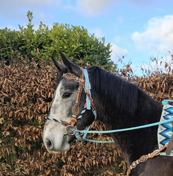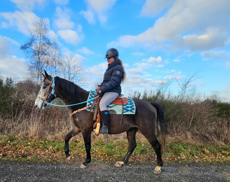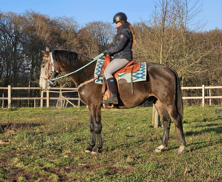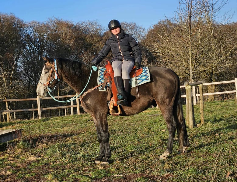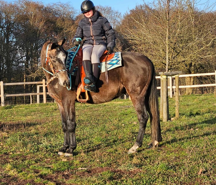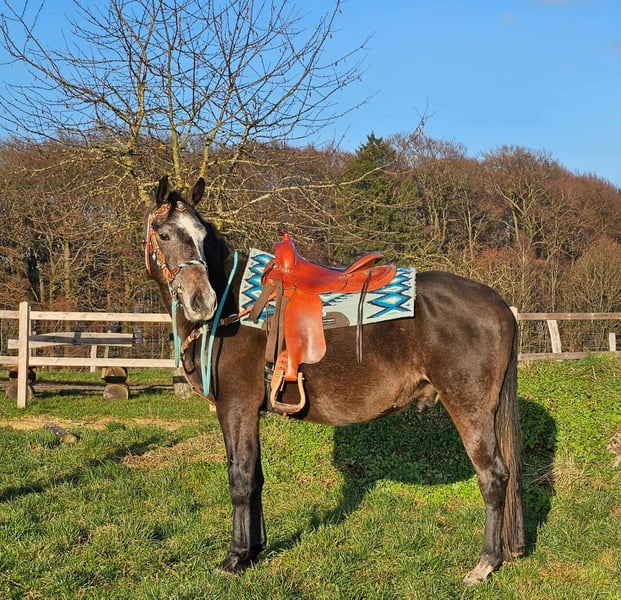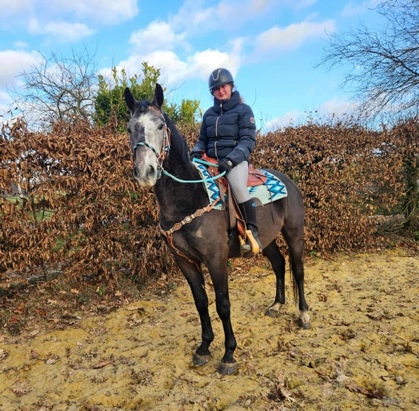 Baro – Apfelschimmel Wallach, lieb, aufgeschlossen & lernfreudig Alter: 4 Jahre (2022 geboren) Stockmaß: ca. 1,60 m Preis: AKU: vorhanden ✨ Beschreibung: Baro ist ein wunderschöner Apfelschimmel-Wallach mit einem sehr freundlichen, offenen Wesen. Er zeigt sich im täglichen Umgang brav, menschenbezogen und besonders verschmust. Als junger Wallach ist er neugierig, aufmerksam und dabei stets angenehm im Handling. Er ist bereits angeritten und möchte seinem Reiter gefallen. Baro arbeitet motiviert mit, zeigt sich lernfreudig und bringt eine positive Einstellung zur Arbeit mit. Trotz seines jungen Alters ist er unkompliziert. Ein junger Partner, der bereit ist, gemeinsam mit seinem Menschen die Welt zu entdecken. 🐎 Perfekt für: Reiterinnen und Reiter, die einen freundlichen, ehrlichen und motivierten Jungwallach suchen. Geeignet für Freizeit, weitere Ausbildung und vielseitige Nutzung. Ideal für Menschen, die Freude daran haben, ein junges Pferd weiter zu fördern. 🩺 Unsere Pferde werden regelmäßig: – entwurmt – vom Schmied betreut – osteopathisch kontrolliert 🛍 Hofladen: Westernsättel, Trensen & Zubehör 🚛 Transport und Equipment auf Wunsch günstig organisierbar Unser Service: ✅ 3 Monate Umtauschrecht ✅ Proberitt: 35 €, jedes weitere Pferd 25 € (beim Kauf am selben Tag angerechnet) ✅ 100 € Sofort-Rabatt bei Abholung/Transport am gleichen Tag ✅ Persönliche & ehrliche Beratung 📞 Anfragen bitte ausschließlich telefonisch: 0171 – 4001968 🕗 Erreichbar täglich von 8–20 Uhr ⚠️ Keine E-Mail oder WhatsApp ⚠️ Alle Angaben ohne Gewähr