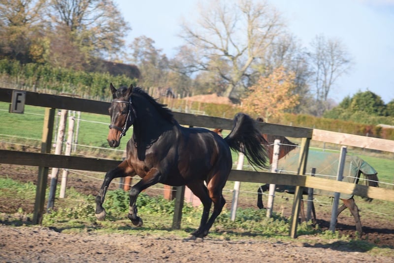 Stunning, incredibly well-behaved, and correct riding horse ruin This native-born French horse is named Daytona Diamond. His previous owner kindly entrusted him to us. He is truly a sight to behold, both inside and out! He is a natural galloper. He has never raced and has never been on a racetrack. He has three very spacious, well-animated gaits. Suitable for multiple disciplines. In our opinion, also gentle enough for recreational riding! We were able to ride him immediately upon arrival. He was born on February 21, 2022, and currently stands around 16.1 hh. He has a full pedigree: Cloth of Stars x Montjeu x Eagle Eyed. Diamond is what you would call a stunning parade horse, waiting for a kind owner with whom he can have a wonderful future! His previous owner would like to stay in contact with the new owner and writes: “Diamond is eager to learn, sweet, a cuddly horse, people and horse-oriented, social, well-behaved, and he loves grooming and attention. The reason for selling is that four horses are simply too many. He deserves more attention and riding.” He is very well-behaved when ridden outdoors here. He confidently leaves the yard alone and heads out onto the street, very calm. Recently treated by the dentist and comes with a recent report. Price €6,450 including brand-name saddle and complete bridle.