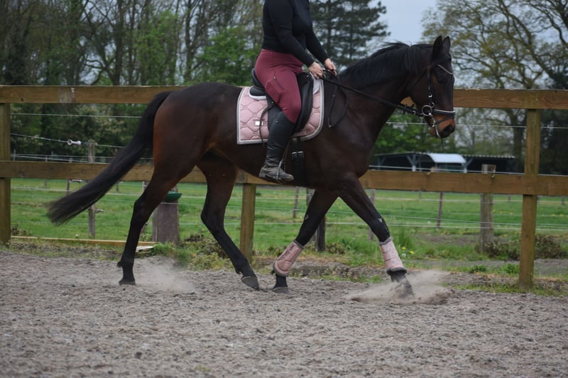 Wunderschöner, äußerst brave und korrekt ausgebildeter Reitpferd Dieser im französischen Blut stehende Wallach heißt Daytona Diamond. Sein Vorbesitzer hat ihn uns geschenkt. Er ist wirklich ein Augenweide – sowohl von innen als auch von außen! Er ist ein von Natur aus galoppierfreudiges Pferd. Er hat nie im Rennsport gearbeitet und war nie auf einer Rennbahn. Er besitzt drei sehr großzügige, gut getragene Gangarten. Er ist für verschiedene Disziplinen geeignet. Unserer Meinung nach ist er auch brav genug für die Freizeitreiterei! Bei unserer Ankunft konnten wir sofort auf ihm losreiten. Er ist 4 Jahre alt, ca. 1,65 m groß und besitzt eine Vollblutstammbaum: Cloth of Stars x Montjeu x Eagle Eyed. Diamond ist ein echtes, prachtvolles Paradepferd, das auf einen liebevollen Besitzer wartet, mit dem er eine großartige Zukunft haben wird! Sein Vorbesitzer möchte gerne den Kontakt zu einem neuen Besitzer halten und schreibt: „Diamond ist lernwillig, lieb, ein Schmusepferd, menschen- und pferdebezogen, sozial und brav. Er liebt Putzen und Aufmerksamkeit. Der Grund für den Verkauf ist, dass vier Pferde doch zu viel sind. Er verdient mehr Aufmerksamkeit und Bewegung.“ Er ist beim Ausritt im Gelände hier äußerst brav. Allein verlässt er den Hof problemlos und geht ganz gelassen auf die Straße. Vor Kurzem wurde er vom Tierarzt behandelt, besitzt einen aktuellen Befundbericht. Preis: 6.450 € inkl. Markenreitstiefel und kompletter Trense
