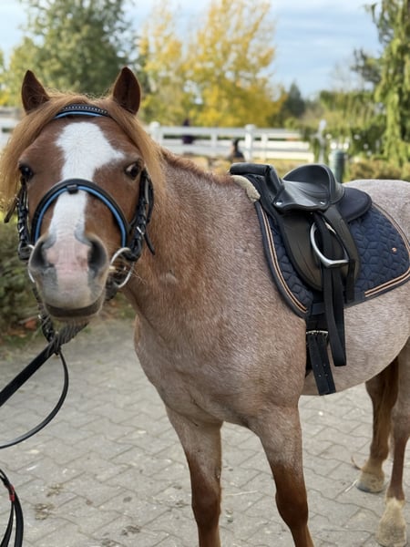 Handsome pony gelding, curious and eager to work, is looking for his home. He has already been ridden by children, is well-behaved in handling, gives his hooves, and stands still while being groomed. He shows himself to be fearless. He is currently kept in a paddock, but a box is also no problem. Barefoot.