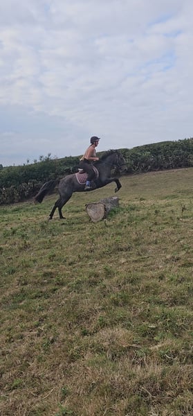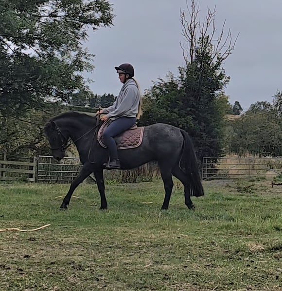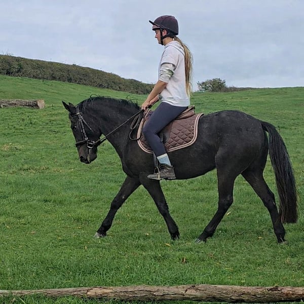 ✨Kevin – Super Smart 13.2hh 5yo Gelding with Huge Potential Kevin is a lovely 4-year-old gelding standing at 13.2hh, with all the basics in place and ready for someone to continue his education and have a lot of fun with. He is easy and safe in every way , not a kick-along ride, forward going without being strong. He hacks confidently alone or in company, will canter on a loose rein through fields, and never gets stupid. In the school he is coming on very well . walk, trot and canter established on both reins and beginning to work into a soft contact. Does look for the contact to help balance due to being green. Kevin absolutely loves to jump and shows plenty of scope. He has been over show jumps, and happily pops over logs out in the field. On the ground he is a dream , easy to catch, stands perfectly for the farrier and vet, to groom and tack up.He was clipped for the first time and just stood even when clipping his face! He doesn’t fidget and would stand all day soaking up attention… a real yard favourite He is still green due to his age, so would suit a confident rider rather than a novice or first-pony home. In the right hands he has a very bright future ,such a sweetheart and someone is going to be extremely lucky to own him.