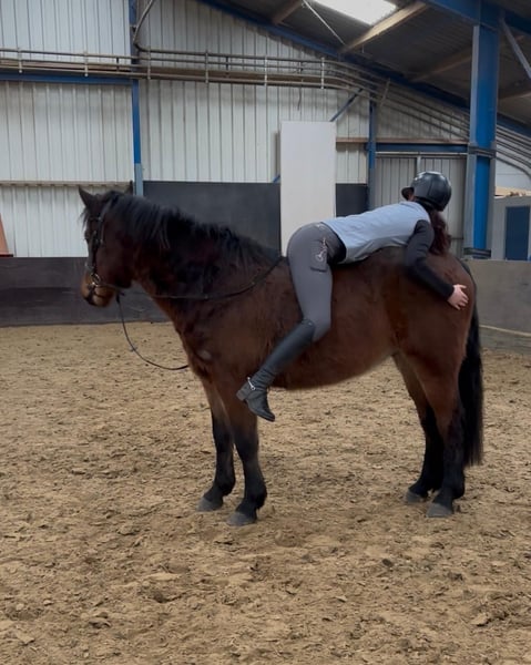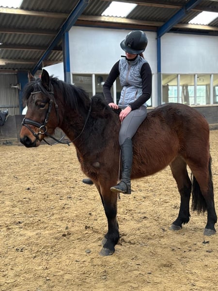Are you looking for a super reliable, cuddly pony with a golden temperament? Meet Lucas, a 4-year-old gelding who is growing into the perfect all-round companion pony. Lucas is a real teddy bear: affectionate, level-headed and not easily fazed by new situations. He is not spooky, is well mannered and understands the basics. At times he can be a little impatient, which means he suits a rider who provides clear boundaries and consistent guidance. When he knows what is expected of him, he is a pleasure to work with. Thanks to his size and build, Lucas is suitable for both youth riders and adults. It is important, however, that his new rider is not insecure or overly hesitant. Lucas does like to test his rider from time to time; for a confident and experienced rider this is no issue at all, but a nervous rider may give him too much room. With clear leadership, he is honest, well behaved and very reliable. If you enjoy riding without a saddle from time to time, Lucas is perfect! Thanks to his steady, comfortable gaits, he is a pleasure to ride even bareback. Under saddle, Lucas is established at Basic (B) level in dressage, appropriate for his age. Of course, he still has plenty to learn, which is completely normal at this stage. To be honest, Lucas sometimes finds arena work a bit monotonous. We strongly believe his heart truly lies in hacking and outdoor riding. He gives a wonderfully safe and trustworthy feeling and thoroughly enjoys long rides out. He would be ideal for someone who loves exploring the countryside or can offer him varied work and new challenges. Health-wise, everything is in excellent order: – Clinically examined and approved earlier this year – Farrier every 8 weeks – Two vaccinations completed, third still to follow – Dentist visited just last week In short: his full health check is completely up to date. Are you looking for a lovely, reliable pony to enjoy fantastic rides out? Then Lucas might just be your new best friend. 💛