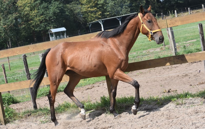 Hier ist Yamas, ein 5-jähriger Wallach mit Abstammung von Anjaal x Creese. Mit seinen ausdrucksvollen braunen Augen und seinem charmanten Erscheinungsbild erobert er sofort die Herzen. Er hat eine schöne, mittelgroße Größe von ca. 1,58 m. Yamas ist ein Pferd mit einem feinen, gelassenen Charakter. Er bleibt in neuen Situationen ruhig und ist nicht leicht beeindruckt von seiner Umgebung. Zudem ist er nicht übermäßig vorwärts gerichtet, was für ein sicheres und zuverlässiges Gefühl im Sattel sorgt. Derzeit arbeiten wir an seinen Bewegungen; er darf noch mehr Takt und Balance entwickeln. Es ist eine gute Idee, ihn zunächst ein Jahr auf der Weide wachsen zu lassen. Deshalb haben wir den Preis um 3.000 € reduziert! Er verfügt über ein Prüfungszeugnis inklusive Blutprobe, in dem er für den Sport zugelassen ist und perfekte Biegproben vorweisen kann. Im Umgang, im Verkehr, im Trailer und in der Herde ist Yamas hier äußerst brav und gelassen. Preis: 2.950 € Eine Reservierung dieses Pferdes ist möglicherweise möglich – schauen Sie doch auf unserer Webseite nach! Pferdekauf auf Ratenzahlung Es ist jetzt bei Stal Doorstap möglich, Ihr Pferd in Teilzahlungen zu erwerben. Voraussetzung ist, dass das Pferd während der Finanzierungszeit auf dem Gelände von Stal Doorstap verbleibt. Selbstverständlich können Sie dann die gesamte Infrastruktur mit dem Pferd nutzen. Die Kosten für das Pferd sowie die Ratenzahlungen gehen zu Ihren Lasten. Eine Rückzahlung der Teilzahlungen ist nicht möglich, bitte bedenken Sie das gut.