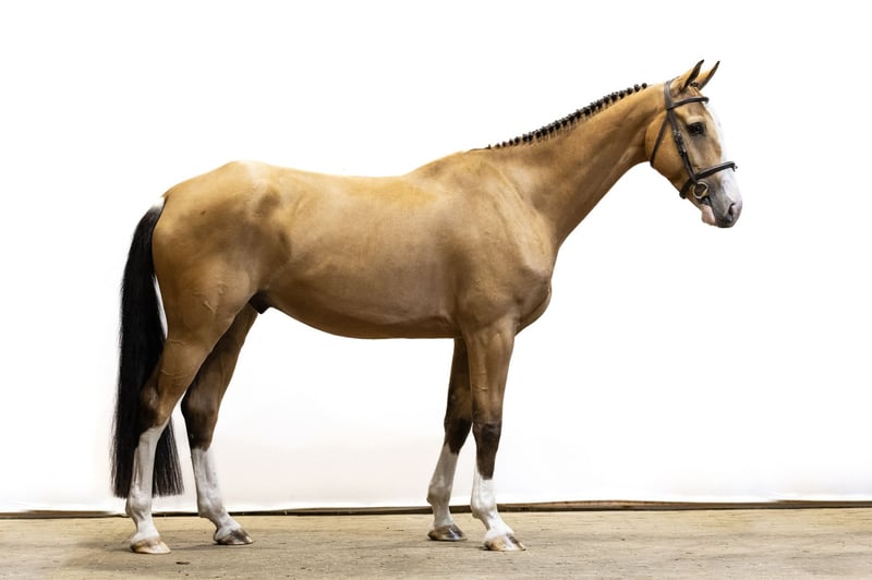 Jeroboam Van De Rib, a six-year-old buckskin showjumping horse, is truly eye-catching. Not only for his striking coat, but also for his impressive scope and quality over fences. He already has experience over courses up to 1.20 meters. We believe he will excel best with a professional or semi-professional rider. His sire, Eldorado van de Rib, is a pinto stallion who competed internationally at 1.40 meters at the age of seven with Jeremy Le Roy (France). Calua du Werfat (Cambito van de Helle) is also the dam of D’Enfer van de Rib, a 1.45-meter level showjumper ridden by Sebastien Planchat (FRA), as well as the AES stallion Envol van de Rib (1.30 meters). https://youhorse.auction/en/auction/Jeroboam-van-de-Rib-ELDORADO-VAN-DE-RIB-x-CAMBITO-VAN-DE-HELLE-5119