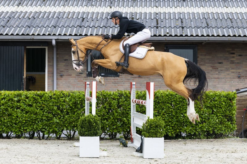 Der sechsjährige Jeroboam Van De Rib ist ein auffälliges Springpferd, nicht nur wegen seiner Buckskin-Farbe. Er zeigt auch großes Springvermögen und Qualität über den Sprüngen und hat bereits Turniererfahrung auf 1,20-m-Niveau gesammelt. Wir sind überzeugt, dass er unter einem professionellen oder semi-professionellen Reiter sein volles Potenzial entfalten wird. Sein Vater, Eldorado van de Rib, ist ein Pinto-Hengst, der im Alter von sieben Jahren mit Jeremy Le Roy (Frankreich) auf internationalem Niveau bis 1,40 m erfolgreich war. Calua du Werfat (Cambito van de Helle) hat ebenfalls das 1,45-m-Niveau erreicht, mit D’Enfer van de Rib, geritten von Sebastien Planchat (FRA), sowie den AES-Hengst Envol van de Rib (bis 1,30 m). https://youhorse.auction/en/auction/Jeroboam-van-de-Rib-ELDORADO-VAN-DE-RIB-x-CAMBITO-VAN-DE-HELLE-5119