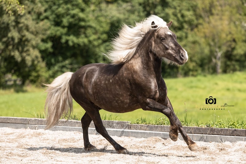 Opdracht van de klant: Felix... ...is een levendige ponyhengst in een bijzondere kleur, die ons meteen heeft weten te betoveren met zijn oprechte en tegelijk vriendelijke-grappige karakter. Hij bevindt zich op een reëel Z-niveau in dressuur, en tot nu toe is hij tot E-Hoogte gesprongen. In springparcours heeft hij zich al meerdere keren bewezen; zijn passie ligt duidelijk in springen. Buitenritten in de groep of met z’n tweetjes geniet hij en toont hij zich daarbij betrouwbaar en zeker, ook is hij verkeers- en wegveilig. Daarnaast is hij ook aan de doppellonge gewerkt en goed ingelopen. Een allrounder in ponyformaat die op alle vlakken overtuigt, maar die graag veelzijdig en uitdagend gewerkt wil worden. Felix is in de omgang absoluut kindvriendelijk en zachtaardig. Hij houdt van kinderen om zich heen, geniet van knuffel- en poetsmomenten, en is eraan gewend dat kleintjes op zijn rug worden gezet en geleid. Onder het zadel leert hij aandacht en lichaamscontrole en vraagt hier ook om. In de rijschool onderscheidt hij zich als een slimme leppelin en brengt hij veel plezier aan vele ruiters. Hij heeft al aan verschillende lessen op de manege meegedaan en heeft zo voor velen een wens kunnen vervullen (bijvoorbeeld het behalen van een klein rijbewijs). Deze droompony heeft een ruiter nodig die zijn hartslag voelt en net zo open voor het leven en slim is als hij zelf. Felix: “Wees slim, stout en wonderlijk!” Hij is uiteraard uitstekend gesocialiseerd en leeft in een kudde in de paddock. Natuurlijk is hij regelmatig ontwormd en voorgesteld aan de hoefsmid (blank hoef). Heeft u een paard dat u graag wilt verkopen? Neem dan gerust contact met ons op. Wij kopen, nemen in consignatie of bemiddelen voor u tot de verkoop is afgerond. Meer informatie op www.wow-pferd.de