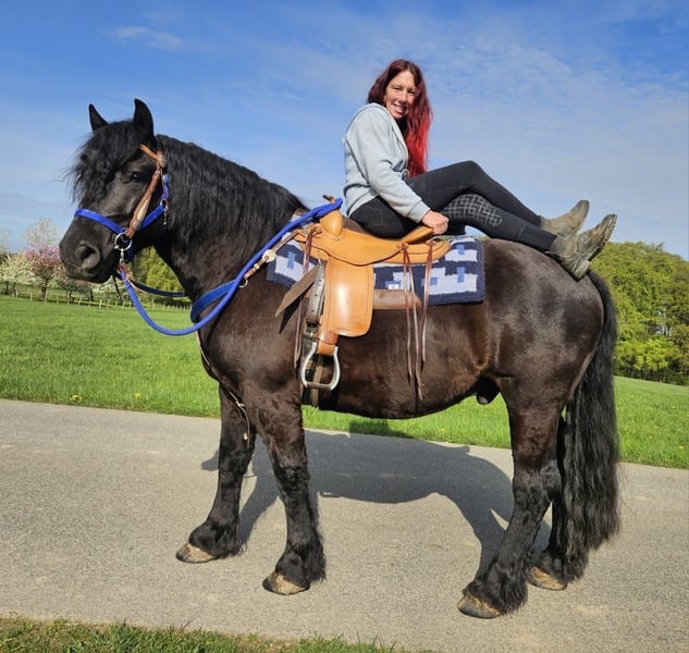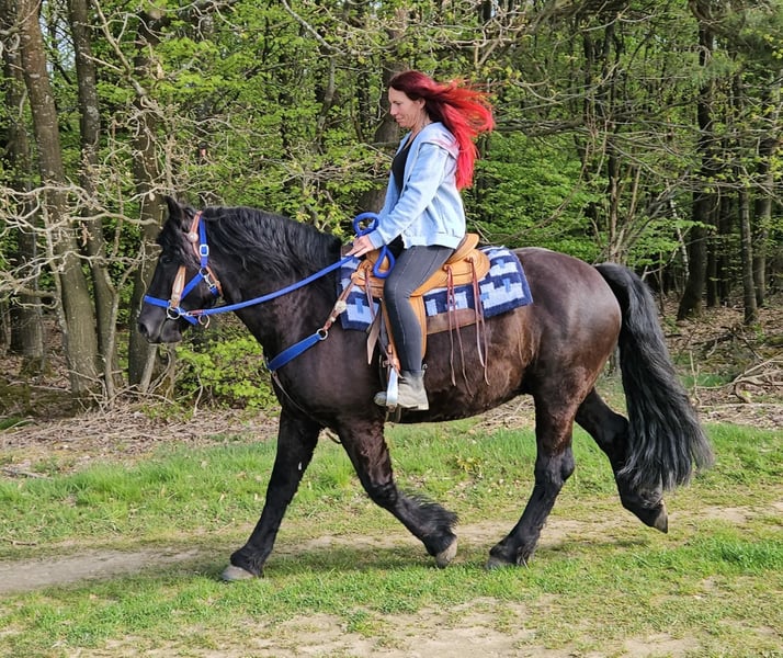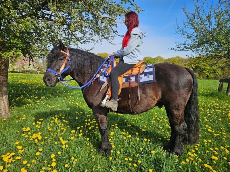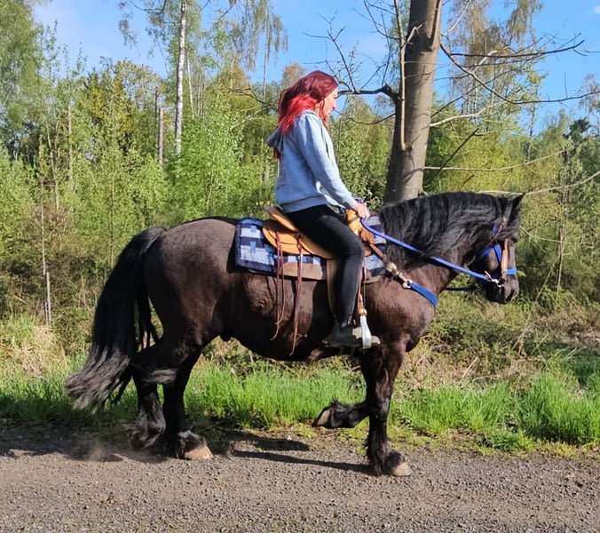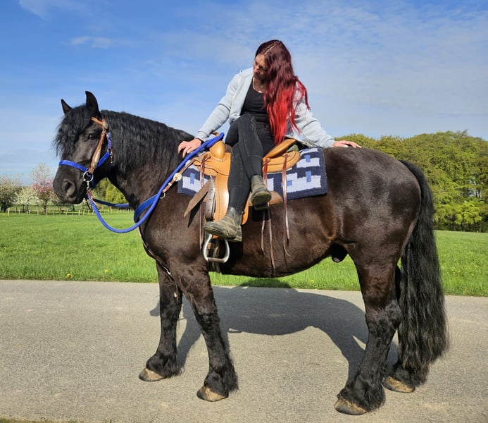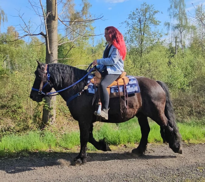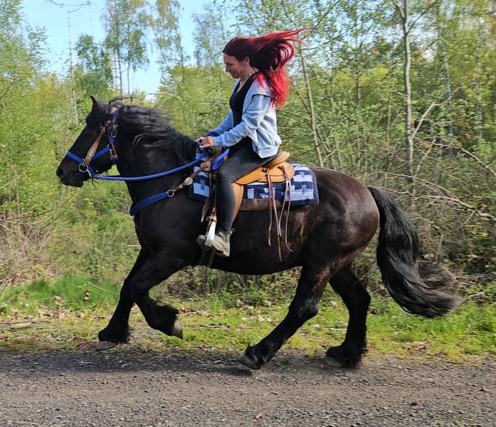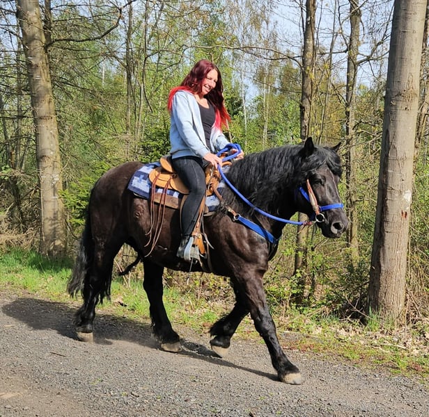 Barocker Rappe – brav, nervenstark & vielseitig Name: Don Camilo Alter: 7J. Stockmaß: ca. 1,60 m Preis: 6500,- AKU: Vorhanden ✨ Beschreibung: Don Camilo ist ein wunderschöner barocker Rappe mit einer ansprechenden Größe von ca. 1,60 m. Er überzeugt durch sein ausgeglichenes Wesen und seinen besonders braven Charakter. Im täglichen Umgang zeigt er sich ruhig, freundlich und absolut unkompliziert. Er ist menschenbezogen, aufmerksam und lässt sich sehr angenehm händeln. Auch unter dem Sattel weiß Don Camilo zu überzeugen. Er ist brav zu reiten und zeigt sich besonders im Gelände nervenstark und zuverlässig. Dadurch eignet er sich hervorragend als Wanderreitpferd und gibt seinem Reiter stets ein sicheres Gefühl. Er bringt eine tolle Einstellung sowie eine gute Gelassenheit mit und ist sowohl für Freizeit- als auch für ambitionierte Reiter ein idealer Partner. 🐎 Perfekt für: Reiterinnen und Reiter, die ein zuverlässiges, ehrliches und unkompliziertes Pferd suchen – ideal für Ausritte, Wanderreiten. 🩺 Pflege & Betreuung: – Regelmäßig entwurmt – Schmied gepflegt – Osteopathisch betreut 🛍 Zusatzangebote: Westernsättel, Trensen und weiteres Zubehör erhältlich 🚛 Service: – Transport kann organisiert werden – 3 Monate Umtauschrecht 🐴 Proberitt: – 35 € (jedes weitere Pferd 25 €) – Wird beim Kauf am selben Tag angerechnet 💰 Preisnachlass bei sofortiger Mitnahme oder Transport am gleichen Tag: – Kategorie 1: 100 € – Kategorie 2 (ab 5.000 €): 250 € 📞 Telefon: 0171 – 4001968 🕗 Täglich erreichbar von 8–20 Uhr ⚠️ Keine E-Mail oder WhatsApp ⚠️ Alle Angaben ohne Gewähr