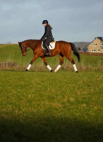 Ocean est un hongre né en 2019, mesurant environ 1,62 m, sired by Shamardal x Duke of Marmalade. * Ocean * est un cheval polyvalent élégant et extrêmement fiable. Ce superbe hongre est prêt à tout pour le plaisir et procure en même temps une sensation de sécurité exceptionnelle. Il se montre sage en carrière, ainsi qu’en extérieur seul ou en groupe. Il ne se laisse pas impressionner par les environnements étrangers, les véhicules, les bâches, le bruit, etc. Il apprécie également les exercices de calme et de détente. !!! NE MANQUEZ PAS DE REGARDER SA VIDÉO !!! Bien élevé au manège et très câlin, ce cheval de rêve ne devrait pas vous échapper. Vous pouvez voir une vidéo récente dans l’annonce ou via le lien suivant : https://www.youtube.com/watch?v=UQg_M6MzG2o Écurie Dederichs – votre partenaire pour l’achat de chevaux Contact & disponibilité : Les demandes doivent impérativement être faites par téléphone au 0173/9792139 Lundi – Vendredi : 09h00 – 18h00 Samedi : 09h00 – 15h00 Dimanche : jour de repos Suivez-nous sur les réseaux sociaux ! Vivez notre quotidien avec nos chevaux à vendre sur Instagram, TikTok & Facebook sous Écurie Dederichs Remise : Pour toute prise en charge immédiate de votre nouveau cheval de rêve, bénéficiez d’une remise de 5 % à 10 %. Essai et présentation : • Essai : 30 € par cheval (max. 2 cavaliers), le montant sera déduit en cas d’achat • Jours fériés : essai à 50 € • Présentation par nos cavaliers : 25 € par cheval (montée, travail au sol, etc.) Examen préalable et transport : • Beaucoup de nos chevaux disposent déjà d’un examen préalable (AKU) • Vous pouvez bien entendu faire venir votre vétérinaire de confiance • Nous organisons volontiers une inspection • Nous vous aidons également à organiser le transport vers votre nouveau domicile Autres chevaux en vente : D’autres chevaux à vendre sont disponibles dans notre écurie, mais ne sont pas encore en ligne. Si votre cheval de rêve n’est pas encore listé, n’hésitez pas à nous contacter. Informations importantes : • La taille approximative est donnée à titre indicatif et n’a pas été mesurée précisément • Toutes les descriptions sont des appréciations subjectives du vendeur et ne constituent pas des garanties de propriété ou de caractéristiques
