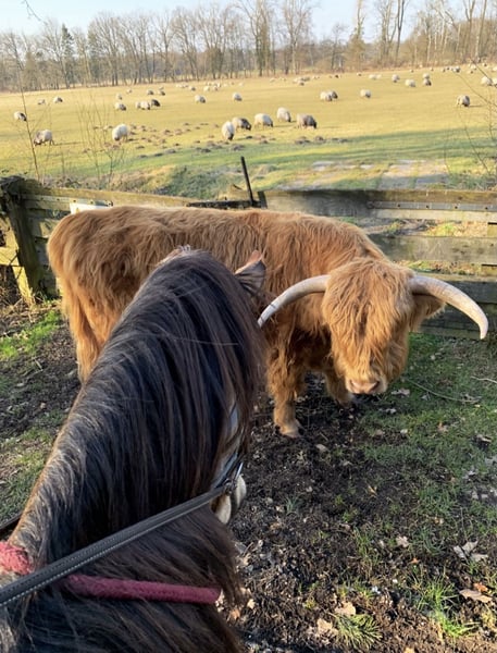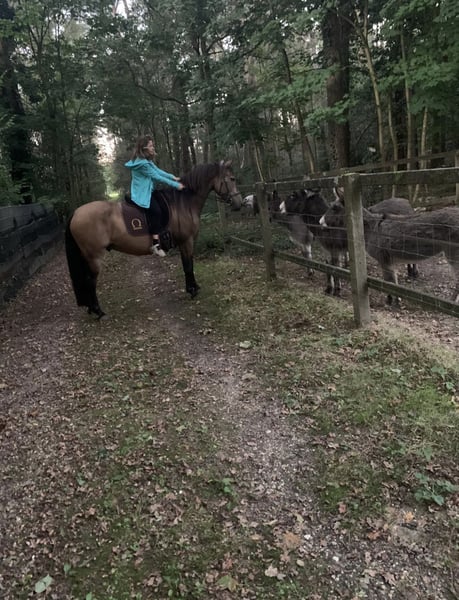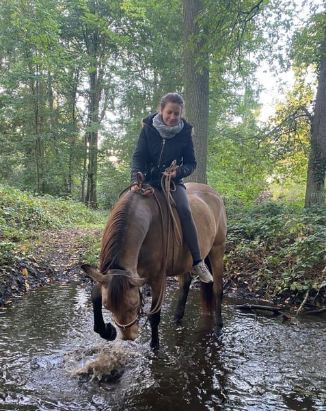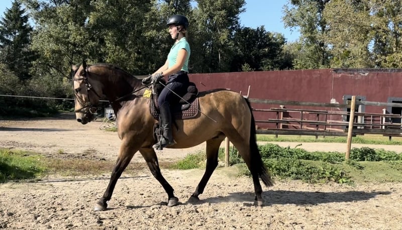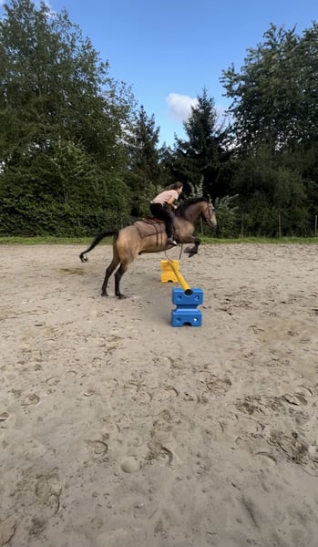 Met pijn in het hart moet ik mijn zielsgenoot verkopen. Omdat hij alleen in de allerbeste handen terechtkomt, vraag ik je het bericht zorgvuldig te lezen en alleen te reageren als je oprecht geïnteresseerd bent om hem als familielid, partner en vriend in je leven op te nemen. Turrón is een import-Spaanse (Conjunto Mestizo), in de prachtige kleur "Bayo", en staat inmiddels 5 jaar aan mijn zijde. Hij is over het algemeen zeer mensgericht. Hij bouwt echter vooral een sterke, bijzondere band op met zijn eigenaar en is daarom geen "familiepaard" of paard voor wisselende ruiters. Van karakter is hij gevoelig, speels, knuffelbaar, intelligent, dominant, nieuwsgierig en relaxed. Hij kan zeer fijn zijn in lichaamstaal, stemcommando’s en ruiterhulpen, maar probeert soms ook zijn eigen wil door te zetten. Daarom is een rustige, liefdevolle, consequente, zelfverzekerde en faire eigenaar belangrijk. Turrón houdt van afwisselende activiteiten. Hij geniet van grondwerk, equikinetiek, cirkeltraining, cavaletti, wandelingen, buitenritten enzovoort. Hij is een “coole peer” en voelt zich zowel alleen als in het gezelschap van andere paarden zeer op zijn gemak in het terrein. Hij wordt gereden in western vrijetijdsrijden, maar heeft ook ervaring opgedaan met handwerk en klassieke dressuur bij een instructrice (zijgangen, recentelijk ook renvers en travers in stap en draf, verlengen van passen in draf, halve passen op weg naar piaffe, en begonnen met de Spaanse stap onder het zadel) -> https://jennifer-pecat.de. Vanwege zijn ras is hij laat aangezet en met veel geduld getraind. Hij is zeer herdverträglich, heeft eerder met merries gestaan, maar voor zijn zenuwstelsel is een herde met alleen hengsten het beste. Sinds oktober woont hij in een privé openstal in Oberkrüchten, en ik zou het liefst willen dat hij daar kan blijven, omdat hij zich duidelijk thuis voelt. Het is een kleine, stabiele groep die hem veiligheid en rust biedt, en voorzien in zijn speels- en knuffelbehoefte. Een 6-sterren deluxe VP-stal – ook voor de mens. Voor hem zijn beweging en rustruimte belangrijk, net als de beperkte weidegang (2 uur per dag, bij zeer langzame inloop). Vanwege zijn afkomst kan hij slechts weinig gras eten en wordt hij volgens zijn mediterraanse stofwisseling gevoerd. Turrón loopt op blote voeten. Helaas is hij allergisch voor stro en pollen (hij krijgt momenteel loratadine tijdens het pollenseizoen). Tot nu toe hebben we geluk gehad – geen koliek, ernstige blessures of andere problemen. Hij is regelmatig gevaccineerd (tetanus, influenza) en ontwormd. Zijn tanden laat hij zelfs zonder sedatie braaf behandelen. Hij gaat probleemloos in de trailer en blijft tijdens het vervoer rustig. Turrón wordt inclusief toebehoren verkocht. Dit is van hoge kwaliteit (Rieser, Signum, Hilburry, etc.) en wordt met €1500 extra berekend. Een keuring (AKU) kan uiteraard door de geïnteresseerde bij een dierenarts naar keuze op locatie worden laten uitvoeren; de kosten hiervoor zijn voor rekening van de koper. Proefritten kosten €40, deze worden bij aankoop verrekend met de koopprijs. *Alle informatie is naar beste weten gegeven, aangezien het om een levend wezen gaat, zonder garantie.*