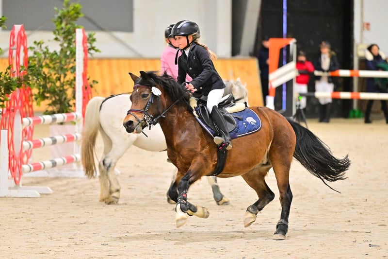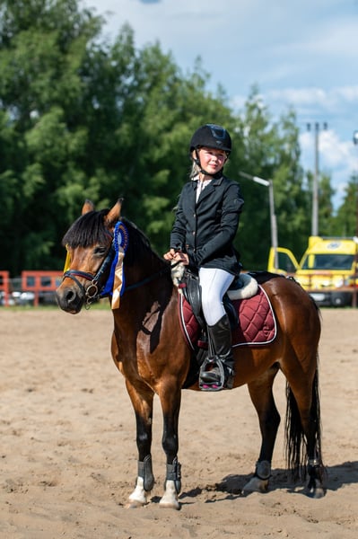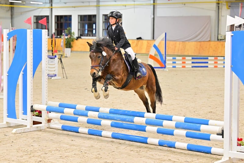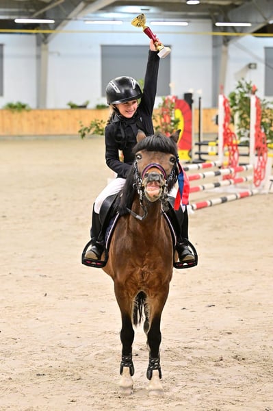 Age: 10 years, height certificate confirming 120 cm at the withers A quick, agile pony, ideal for show jumping competitions, as well as for style contests, which are also her strength—especially when riding with her younger daughter. She has competed in 70/80 cm classes with the older daughter and 55-60 cm classes with the younger one (another child's head). This pony is perfect for a confident child who wants to win. She jumps everything—planks, ditches, tarps, anything placed in her path. Very well-trained in dressage—she performs flying changes (even every two strides), shoulder-ins, turns, and leg yields. She has participated in numerous competitions with successful results. In the terrain, she is problem-free—she does not race or spook. Both daughters earned her a bronze and a silver badge. Transport is no issue—she loads herself into the trailer. She is barefoot and has had no health problems; fully vaccinated. There is an option to include a suitable saddle with the sale. For more information, please contact me via private message.