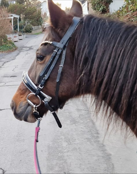 Für unsere 10-jährige Elly (ca. 1,40 m) suchen wir einen Platz bei pferdeerfahrenen, einfühlsamen Menschen, die bereit sind, sich auf ein sensibles Charakterpony einzulassen. Wir geben sie schweren Herzens ab, da sie sich in unserer kleinen Reitschule zunehmend gestresst zeigt und dieses Umfeld ihren Bedürfnissen nicht gerecht wird. Sie ist KEIN Anfängerpony, sondern eine Stute mit eigener Meinung, die klare, faire Regeln, Sicherheit und eine konsequente, ruhige Führung braucht. Gegenüber neuen Menschen ist sie zunächst unsicher und braucht Zeit, Geduld und Vertrauen, um eine Bindung aufzubauen. Mit häufig wechselnden Bezugspersonen oder fremden Menschen kommt sie nicht gut zurecht. In der Herde ist sie sehr rangniedrig. Sie fühlt sich am wohlsten in einer kleinen, ruhigen Gruppe und benötigt Nachts einen Rückzugsort für sich. Laut Hufschmied hatte sie einmal Hufrehe - Mit angepasster, rehegerechter Fütterung und begrenzter Weidezeit kam sie bei uns gut zurecht. Beim Hufschmied zeigte sie sich bisher brav und das verladen, sowie die Fahrt zu uns machte sie auch super mit. Ich habe mit ihr Handarbeit, Doppellonge sowie Freiarbeit angefangen, da zeigt sie sich sehr lernwillig, ihrer Bezugsperson zugewandt und hat freude daran. Für sie wünschen wir uns ein ruhiges, pferdegerechtes Zuhause mit einer festen Bezugsperson, die ihr die nötige Zeit gibt anzukommen und sie so nimmt, wie sie ist ❤️
