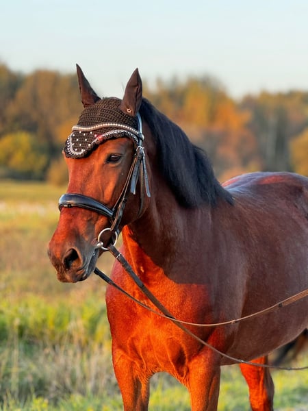 Bela ist eine wunderbare, intelligente 10 Jahre alte Stute, 148 cm groß, sehr bequem zu sitzen, flexibel, mit weichem Maul, die Ihre großartige Partnerin als Freizeitpferd, für klassische Dressur oder Westernreiten werden könnte. Sie beherrscht Bodenarbeit, Freiarbeit, Handarbeit und Longieren, sie gibt alle vier Hufe gut und kennt seitliche Bewegungen (Schulterherein, Traversale, Viertelwendung). Sie hat begonnen, im Gegenansatz zu arbeiten und hat einige grundlegende Sprungerfahrungen unter dem Sattel.
