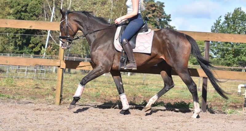 Eyecatcher: superbrave 9 jarige rijpaardmerrie Paddy is een 9 jarige dame van ca. 1.62m hoog, met een afstamming van Leading Light x Caoba by Hernando ( FR) Ze heeft een chique, maar toch degelijke bouw met mooie lange benen en laat zich hier fijn rijden. Wij konden door omstandigheden een lange tijd haar niet rijden en konden zó weer op haar wegrijden, ze is hier superbraaf. Daarbij heeft ze een zacht mondje en reageert ze fijn op de hulpen. Een zware hand is bij haar absoluut niet nodig maar ze is hier ook niet te gevoelig of te rillerig. Paddy is hier verkeersmak, gezond en vrij van gebreken. Voor de fokkerij is ze eveneens zeer interessant! Verder is ze ontzettend sociaal in de groep, de omgang en op stal. Is onlangs door de tandarts behandeld, in bezit van een recent rapport. Prijs € 6450,- incl merkzadel en dekje
