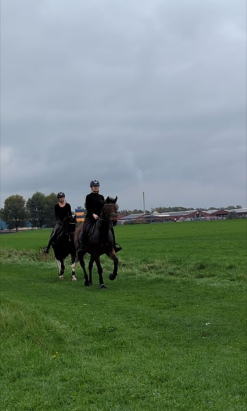 Our sweet Dark is looking for a new home. Dark is a 9-year-old mare, standing 1.64 m, with a very gentle character. She is well-behaved under saddle, does not spook easily, and has a good walk. However, she is somewhat sensitive, especially in the mouth and on the aids. Dark is seeking a home where she can enjoy plenty of turnout. She is well traffic-proof and is comfortable going out alone. She is suitable for dressage and enjoys groundwork, but she does not like jumping, as it makes her very excitable and stressed. She does enjoy pole work. Dark also prefers being outside. She is calm and relaxed in the stable. We keep her inside at night and turn her out to pasture during the day. We are looking for a home where she can spend lots of time outside. Dark has had a few foals through a lease program and has come back to us to resume riding and find a new home. I do not consider Dark suitable for a beginner rider or very young riders. A confident teenager could handle her. The rider should be able to manage walking, trotting, and cantering in balance. On June 10, 2025, Dark was X-rayed without any remarks. She has a passport and pedigree from Dandy Man x Zafonic. All re-registrations are permitted, K.K. WIJK EN AALBURG For more information, please send a private message or contact via WhatsApp at 0654945147.