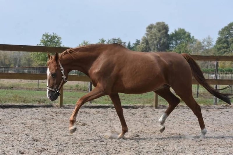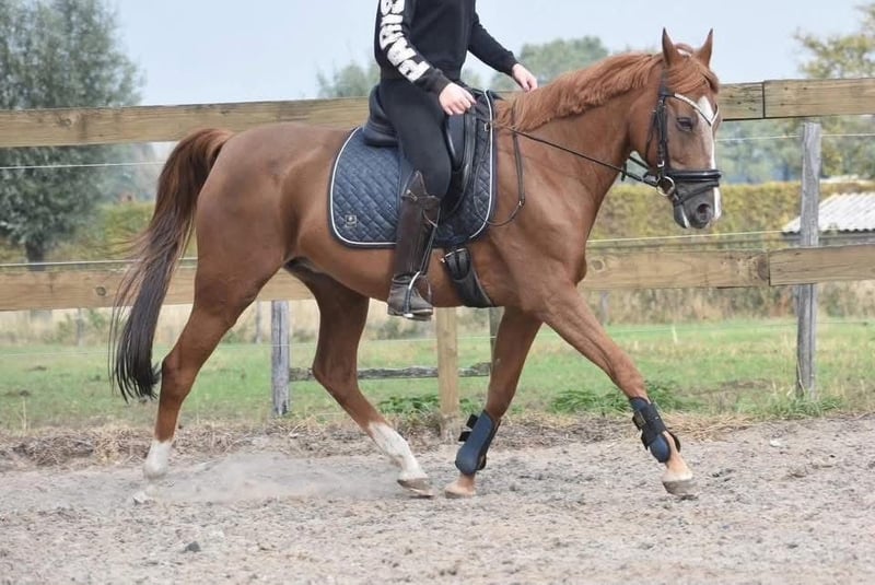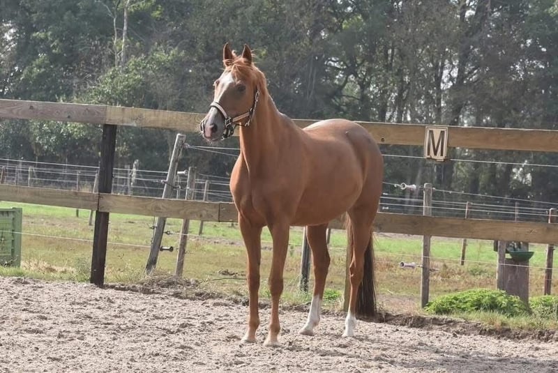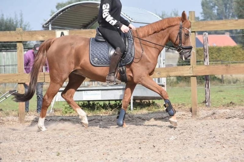 Sissi is a stunning little horse! She has a lovely build and a shining coat that greets you warmly. She has been ridden here and previously with great calmness. She is a mare approximately 15.3 hh, appearing larger due to her build. Sissi is older, born on May 31, 2006, but in excellent health and free of stable vices. She has recently undergone a veterinary check, including blood tests, and has been deemed suitable for recreational riding. She comes from a full pedigree of Fortuna C Chenu x Pershing. Sissi is suitable for beginner riders and can be cared for and ridden here. Price: €2,750, including a well-known saddle and saddle pad.