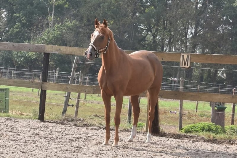 Sissi is a stunning little horse! She has a full, strong build and a radiant presence. She has been ridden here and previously with great calmness. She is an approximately 1.53 m mare, appearing larger due to her body. Sissi is older, born on May 31, 2006, but in excellent health and free of stable vices. She has recently undergone a health check, including blood tests, and has been deemed suitable for recreational riding. She comes from a full pedigree of Fortuna C Chenu x Pershing. Sissi is suitable for beginner riders and can be cared for and ridden here. Price: €2,750 – including a well-known saddle and saddle pad.