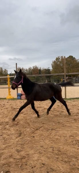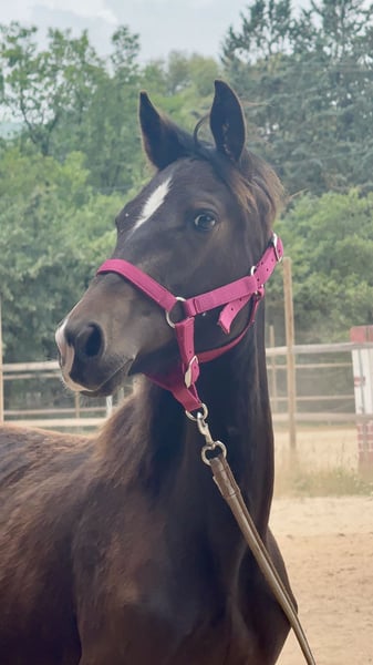**Pouliche - origine constatée , née en 2024** Nous proposons à la vente une jolie pouliche, issue d'un père selle français ( Fuego de Fetan par Classic Bois Margot) et d'une mère croisée appaloosa ( Ukie part GBG Eyes Mac Shannon) , née en 2024. D'une taille de 135 cm environ en pleine croissance elle présente un léger retard (mère primipare). Robe bai capé Son tempérament calme et sa douceur en font une pouliche adaptée à un cadre familial. Très bien manipulée depuis sa naissance à la maison elle est habituée aux soins quotidiens, ce qui facilite son contact avec l'homme. N'hésitez pas à nous contacter pour plus d'informations ou pour organiser une visite.