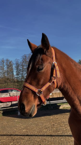 Jungstute mit viel potential. Leider muss ich sie aus Privaten Gründen abgeben. Dabei geht aber immer Platz vor Preis da ich nichts überstürzen will. Sie ist kein Anfänger Pferd da sie mit ihren 2 Jahren noch sehr grün hinter den Ohren ist. Ich wünsche mir für sie einen Platz, wo sie viel mit anderen Pferden draußen stehen kann und einfach noch Baby sein darf aber sie auch etwas gefordert wird. Sie freut sich immer wenn man kommt und mag sofort immer Kuscheln und Aufmerksamkeit. Die Kleine ist total aufgeschlossen gegenüber dem Menschen und freut sich immer neue Sachen zu entdecken und kennen zu lernen. Deswegen kennt sie schon eine Stange über dem Rücken zu haben und alle möglichen schrecktrainings Gegenstände. Aktuell kennt sie auch schon leichte Anfänge von longieren und natürlich Spazierengehen.
