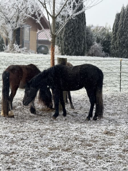 Ponystute mit Herz sucht ihren Menschen 3 Jahre, aktuell ca. 1,30 m, erwartetes Endmaß ca. 1,38 m Manche Ponys sieht man und weiß sofort: Das wird mein echter Herzenspartner! Diese junge Stute ist genau so ein Charakter: freundlich, liebevoll und dabei herrlich neugierig auf alles, was das Leben zu bieten hat. Sie ist in der Herde aufgewachsen, super sozialisiert, verspielt mit ihren Artgenossen und hat dabei ein rundum angenehmes, ausgeglichenes Wesen entwickelt. Bei uns war und ist sie bislang immer gesund und munter. Im Alltag zeigt sie sich brav im Umgang und an der Hand, kennt das Fohlen-ABC, ist schmiedefromm und verladefromm, also genau die Basis, die man sich für eine sichere, stressfreie Zukunft mit seinem Pferd wünscht. Besonders schön: Sie ist auch zu Kindern sehr freundlich (das sollten auch die Kinder sein, respektvoll), sucht den Kontakt, und genießt die Aufmerksamkeit. Putzen? Findet sie großartig. Spaziergänge auch alleine, über unsere große Reitanlage macht sie schon gelassen. Neue Situationen geht sie aufgeschlossen und interessiert an. Sie ist altersgerecht sehr gut entwickelt und bereit für den nächsten Schritt: Sie kann nun angeritten oder eingefahren werden, ideal für alle, die sich ihr Pony in Ruhe, fair und passend aufbauen möchten. Aktuell steht sie im Offenstall, kennt aber auch Box mit Paddock. Sie ist regelmäßig entwurmt und bestens gepflegt. Wichtig für Interessenten: Ab Mitte Februar geht sie bei uns in professionelle, pferde- und altersgerechte Ausbildung. Mit jedem Ausbildungsstand wächst nicht nur ihr Können sondern entsprechend auch ihr Preis. Wer sie jetzt kennenlernt, hat die Chance, sich dieses besondere Pony frühzeitig zu sichern. Es besteht die Möglichkeit sie zur weiteren Ausbildung bei uns zu lassen. Wenn du ein Pony suchst, das nicht nur brav ist, sondern dich mit seinem Charakter jeden Tag anlächelt dann könnte sie genau die Richtige sein. Bei ernsthaftem Interesse freuen wir uns über eine Nachricht mit kurzer Vorstellung (Erfahrung, zukünftiger Platz, Einsatzwunsch). Nur in beste Hände.