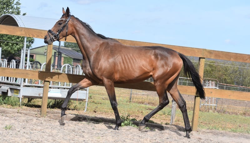 Hier is Yvy, een prachtige jonge dame van 3,5 jaar oud met een stokmaat van ca. 1.55m. Haar afstamming is Doyen x Little Nugget. Ze heeft een chique, elegante bouw en weet zeker de aandacht te trekken zodra je de stallen binnenloopt. Ze heeft een ontzettend lief en eerlijk voorkomen. Ivy heeft 3 fantastische gangen en is daarmee geschikt voor meerdere takken van de sport. Ondanks haar jonge leeftijd pakt Yvy het werk hier heel goed op. Ze werkt graag samen met haar ruiter en doet haar best om alles zo goed mogelijk te begrijpen. Momenteel wordt ze bij ons dressuurmatig en recreatief doorgereden en laat ze daarbij een fijne instelling en veel potentie zien. Ze is geheel vrij van gebreken. In bezit van zeer recent keuringsrapport inclusief bloedafname. Prijs 3950- incl. merkzadel en dekje