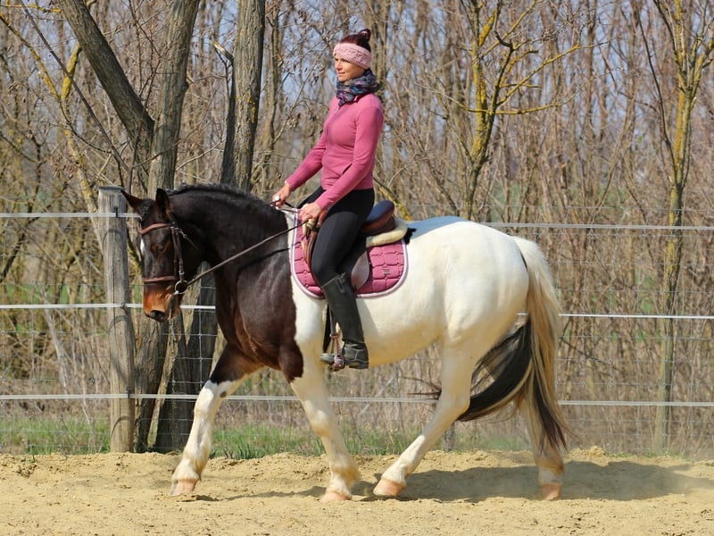 Cute and lovely young mare searching for her new home. She is easy and nice to ride, handle. Absolutely uncomplicated young horse, has never made any bucking or anything like this. Her whole family - broodmares, stallion and sisters/brothers - are really kind horses. She grow up by us, was easy to ride in. You can ride her after some days break also without longeing to let her to calm down. She is sleeps in box, during the day is she on a paddock with her sister, no one of them are dominant type. In the future she can be a perfect pleasure horse, but due to her calm habitant can she be also a therapie horse. She jumps also very well, will be able to make some small parcours too.