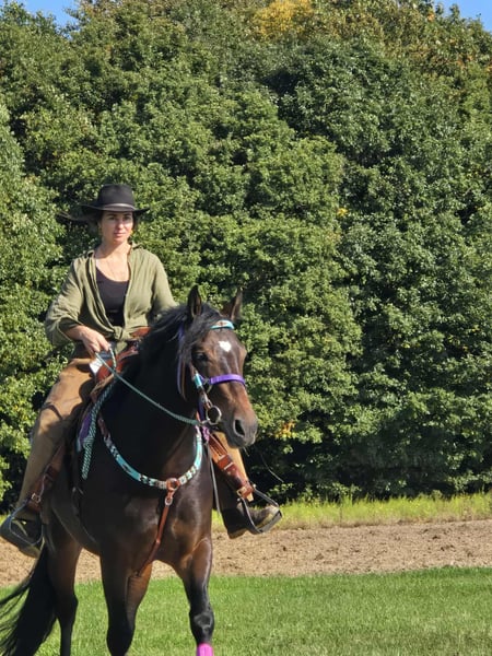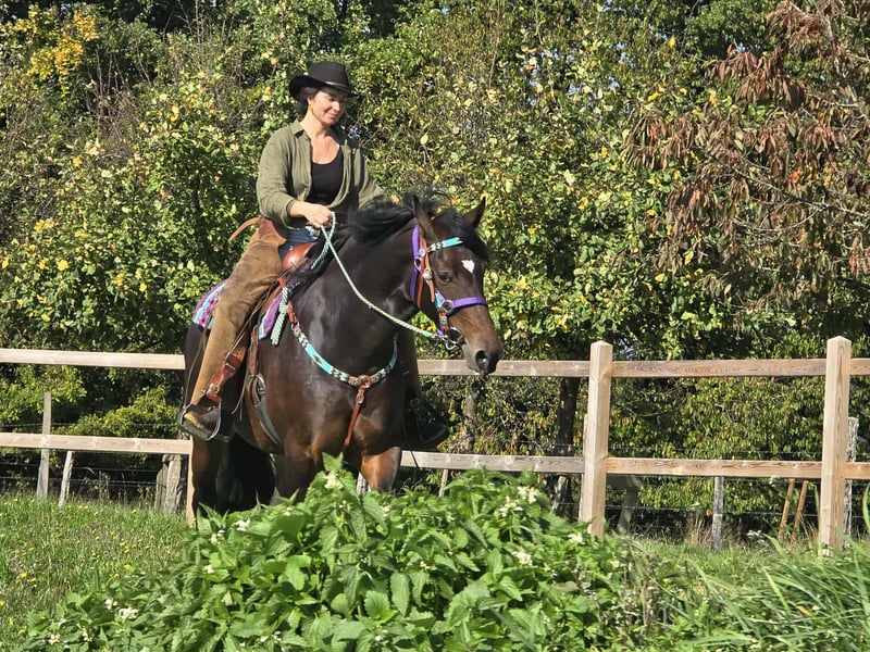 Barocke Dunkelbraune -Stute – kräftige Schönheit Alter: 3,5 Jahre Stockmaß: ca. 1,58 m Preis: 6500,- AKU vorhanden Sie ist: – brav im Umgang und beim Reiten – menschenbezogen & freundlich – lernt schnell und zeigt sich kooperativ – in schöner barocker Aufmachung mit viel Ausdruck – bestens geeignet für Freizeit, Gelände 🐎 Perfekt für: Reiter mit etwas Erfahrung, die eine junge, solide Stute nach eigenen Vorstellungen ausbilden möchten Unsere Pferde: – regelmäßig entwurmt – vom Schmied & Osteopathen betreut 🛍 Hofladen: Westernsättel, Trensen, Zubehör 🚛 Transport & Zubehör auf Wunsch günstig organisiert Unser Service: ✅ 3 Monate Umtauschrecht ✅ Proberitt: 35 €, jedes weitere Pferd 25 € (beim Kauf am selben Tag angerechnet) ✅ 100 € Sofort-Rabatt bei Abholung/Transport am selben Tag ✅ Persönliche & ehrliche Beratung 📞 Anfragen bitte nur telefonisch: 0171 – 4001968 🕗 Täglich erreichbar von 8–20 Uhr ⚠️ Keine E-Mail oder WhatsApp ⚠️ Alle Angaben ohne Gewähr