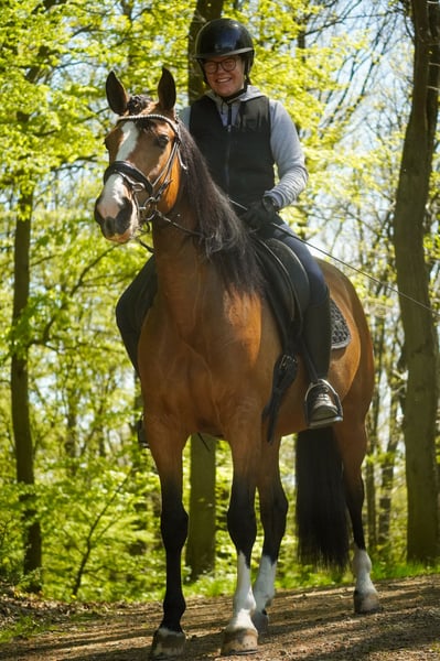 Doladera – klacz – około 158–160 cm *Doladera* to przepiękna, wszechstronna klacz. Bardzo spokojna i odważna. Prawidłowo porusza się w ujeżdżeniu i posiada trzy świetne cechy charakteru, przy tym bardzo wygodna w siodle. Doskonale radziła sobie na lonży, chętnie chodzi samodzielnie i w grupie na teren, jest spokojna nawet w obcej okolicy. Doladera przechodzi przez wodę, pokonuje plandeki, pojazdy i inne przeszkody, zachowując absolutną nerwową stabilność i opanowanie. Potrafi też ładnie skakać. To koń, któremu można powierzyć różnorodne zadania. Całkowicie wszechstronna. Nie jest stępiona, z nią można cieszyć się jazdą na wiele sposobów! Zdecydowanie obejrzyj jej film! Wyglądowo przypomina ogiera, jest po prostu przepiękna. W kontaktach z ludźmi jest towarzyska, przyjacielska i łagodna. Doladera to koń marzeń pod każdym względem. Aktualne nagranie znajdziesz tutaj w ogłoszeniu lub pod tym linkiem: https://www.youtube.com/watch?v=UV01VwQVz7c Hodowla koni Dederichs – Twój partner w zakupie konia Kontakt i dostępność: Prosimy o zapytania wyłącznie telefonicznie pod numer 0173/9792139 Poniedziałek – piątek: 09:00 – 18:00 Sobota: 09:00 – 15:00 Niedziela: dzień wolny Śledź nas na mediach społecznościowych! Zobacz naszą codzienność z końmi na Instagramie, TikToku i Facebooku na profilu Hodowla koni Dederichs Rabat: Przy natychmiastowym odbiorze nowego wymarzonego konia otrzymujesz rabat od 5% do 10% Próba jazdy i prezentacja: • Próba jazdy: 40 € za konia (maksymalnie 2 jeźdźców), kwota ta zostanie odliczona od ceny zakupu • Święta: próba jazdy 50 € • Prezentacja przez naszych jeźdźców: 30 € za konia (wstępne jazdy, praca na ziemi itp.) Badanie przedzakupowe i transport: • Wiele naszych koni ma już przeprowadzone badanie przedzakupowe (AKU) • Oczywiście można zabrać własnego weterynarza • Chętnie zorganizujemy badanie • Pomagamy również w organizacji transportu do nowego domu Inne konie na sprzedaż: W naszej stajni czekają na sprzedaż kolejne konie, które jeszcze nie są dostępne online. Jeśli Twoje wymarzone konie jeszcze nie ma w ofercie, nie wahaj się z nami skontaktować. Ważne informacje: • Szacunkowa wysokość w kłębie i nie jest dokładnie zmierzona • Wszystkie opisy są subiektywną oceną sprzedającego i nie stanowią gwarancji cech końca
