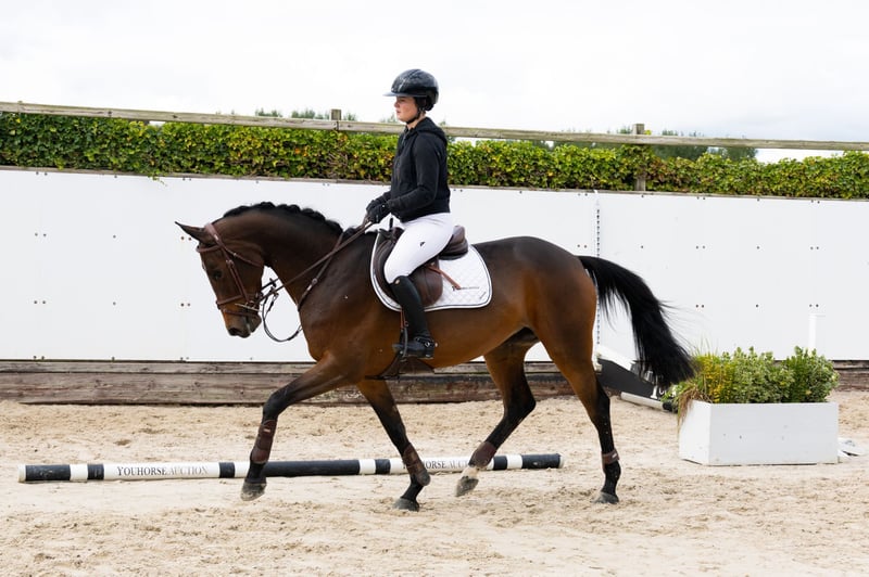 The five-year-old Promise is ready to jump courses. She is a very nice blood mare who handles everything easily and with pleasure. Every jump is spot-on, and that’s exactly how we like them. Her sire is the AES-approved stallion Jorlan II (who cleared 1.25 meters in show jumping at age six last year), combining top genetics from Verdi, Heartbreaker, and Voltaire. Her dam, Dorte, descends from the French Nations Cup stallion Flipper d’Elle. She has already produced two excellent show jumpers: Io (competing at 1.40 m level) and Karim (at 1.35 m level). The granddam, Nicce (by Cantus), is a daughter of the renowned 1.60 m Grand Prix mare Audi’s Jikke, ridden by Eric van der Vleuten, and dam of the KWPN stallion Vleut (1.60 m Grand Prix) as well as two other jumpers at 1.35/1.40 m. Audi’s Jikke is also the great-grandmother of the 1.60 m Grand Prix horses Olympike van ’t Merelsnest with Petronella Andersson, Elwikke with Maikel van der Vleuten, and Eckhart 2 with Jörg Oppermann.