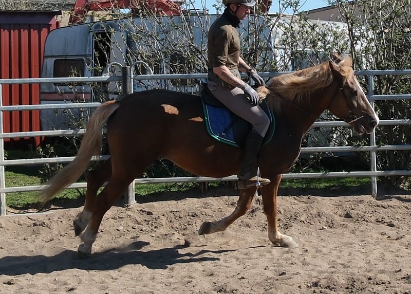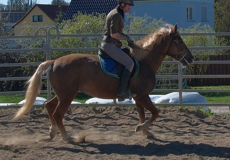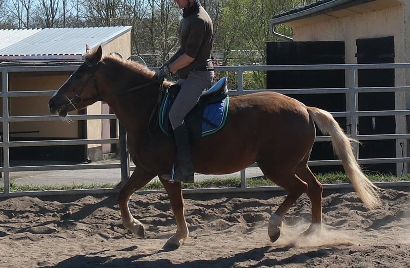 Bewegungsstarke,fleißige und sehr menschenbezogene kleine Warmblutstute. Sie ist sehr gut in allen Gangarten auf dem Platz und in der Halle geritten. Weiterhin ist sie problemlos allein im Gelände und Straßenverkehr geritten. Geländereiten,Western,Schulbetrieb Sicher im Straßenverkehr und Gelände. 6 Jahre, 153cm Bei Interesse bitte anrufen, keine Mail! Für eventuell auftretende Fehler in der Beschreibung gilt keine Gewähr! Tel.: 0173-3843407 Da es sich um ein lebendes Tier handelt, sind dies subjektive Eindrücke des Anbieters und keine zugesicherten Eigenschaften des Tieres! Ständig schöne Fahr-u.Freizeitpferdesowie neue Kutschen verschiedener Modelle preiswert im Angebot. Anschrift Stall: 99628 Buttstädt, Oberwendenstraße 39