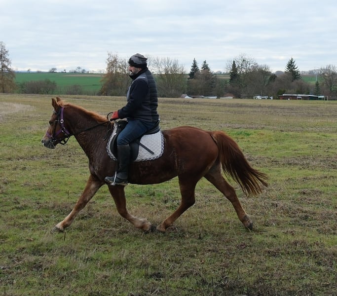 Marlena ist bestens im Gelände geritten sowie auf dem Platz und in der Halle. Sie ist unkompliziert und einfach zu händeln. Mit ihrem kräftigen Körperbau ist sie auch für größere Reiter geeignet. Weiterhin ist sie einspännig gefahren. 7 Jahre, 147cm Bei Interesse bitte anrufen, keine Mail! Für eventuell auftretende Fehler in der Beschreibung gilt keine Gewähr! Tel.: 0173-3843407 Da es sich um ein lebendes Tier handelt, sind dies subjektive Eindrücke des Anbieters und keine zugesicherten Eigenschaften des Tieres! Ständig schöne Fahr-u.Freizeitpferdesowie neue Kutschen verschiedener Modelle preiswert im Angebot. Anschrift Stall: 99628 Buttstädt, Oberwendenstraße 39